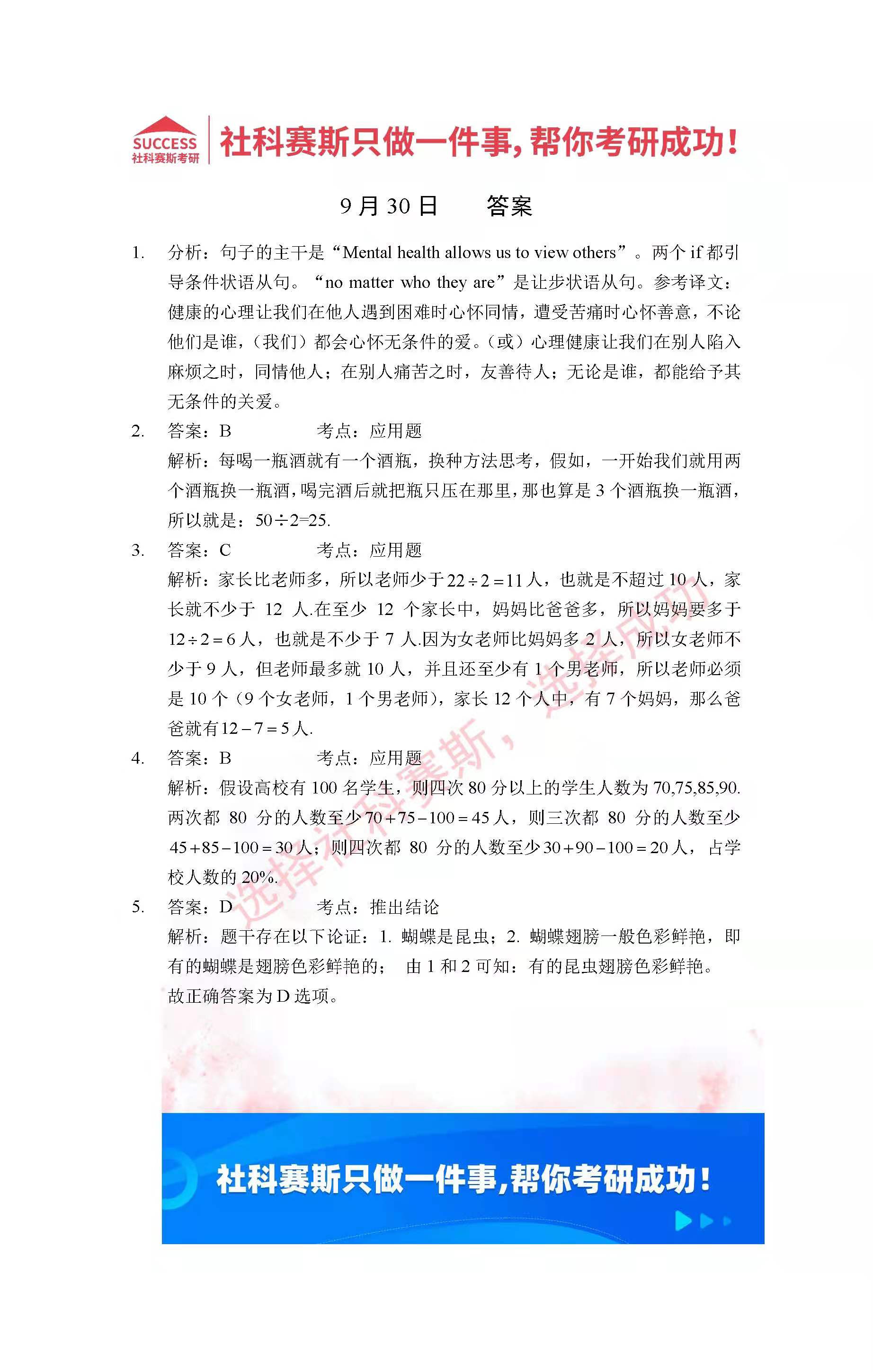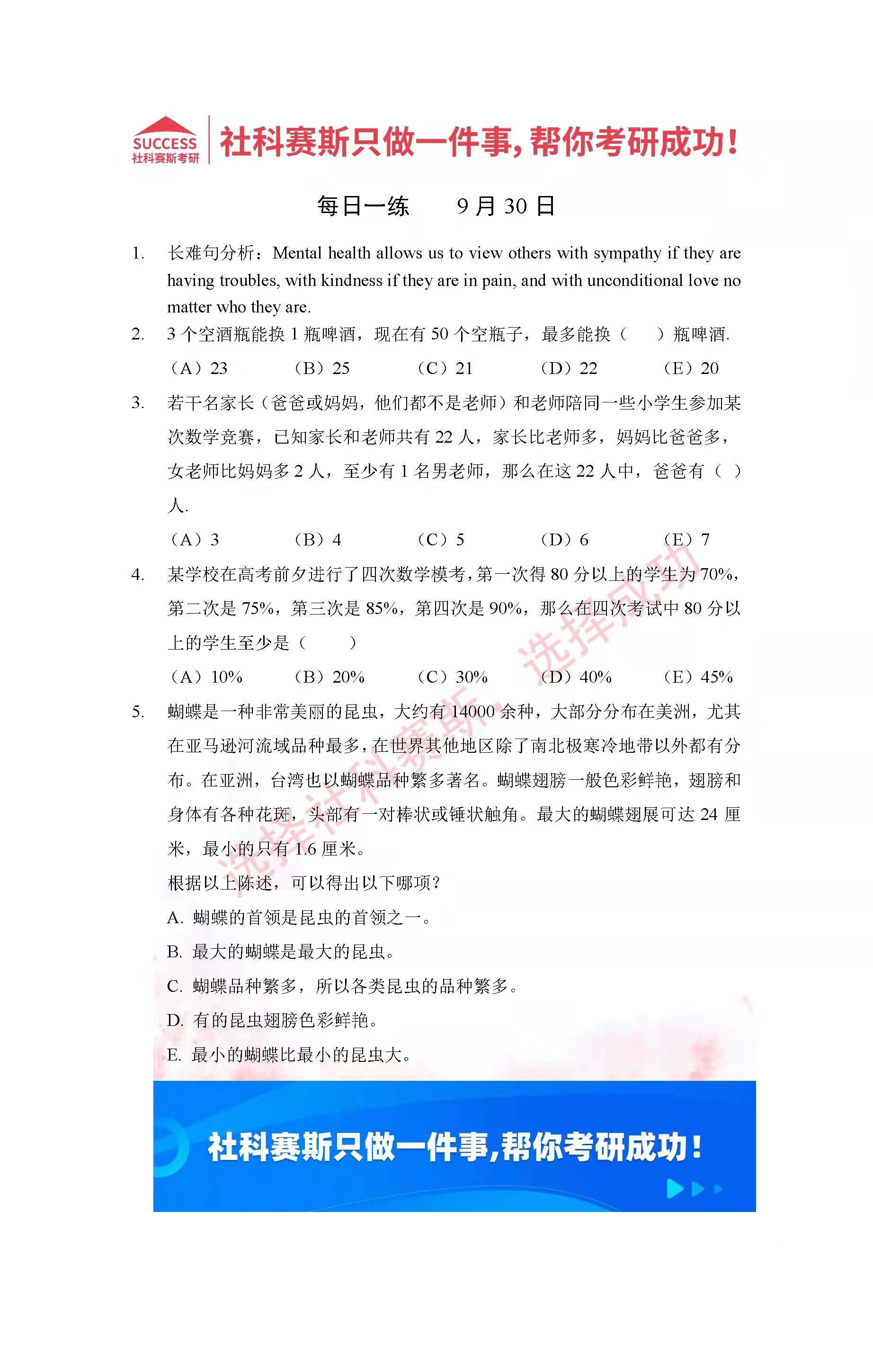 以上就是社科賽斯考研網(wǎng)小編為大家整理2022考研每日一練:9月30日管理類聯(lián)考每日一練及答案的全部?jī)?nèi)容,希望各位考生堅(jiān)持利用起來(lái),更多每日一練內(nèi)容請(qǐng)持續(xù)關(guān)注社科賽斯考研網(wǎng)。