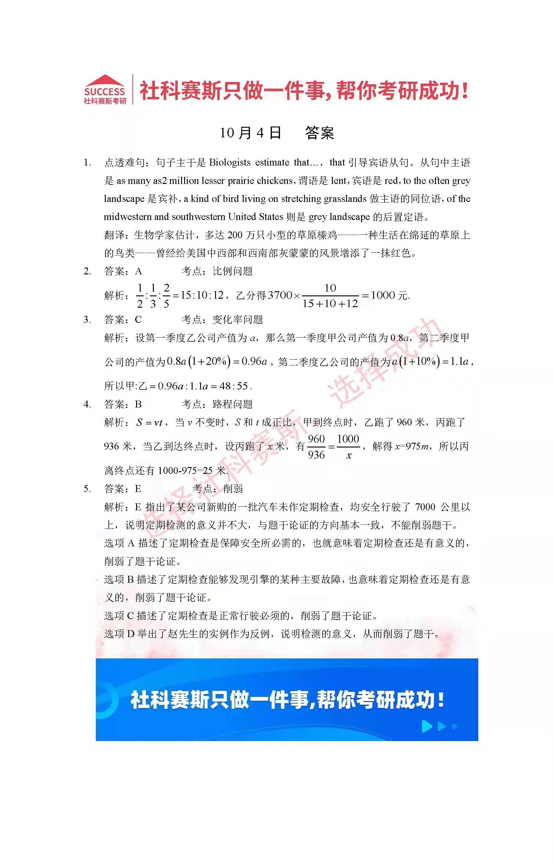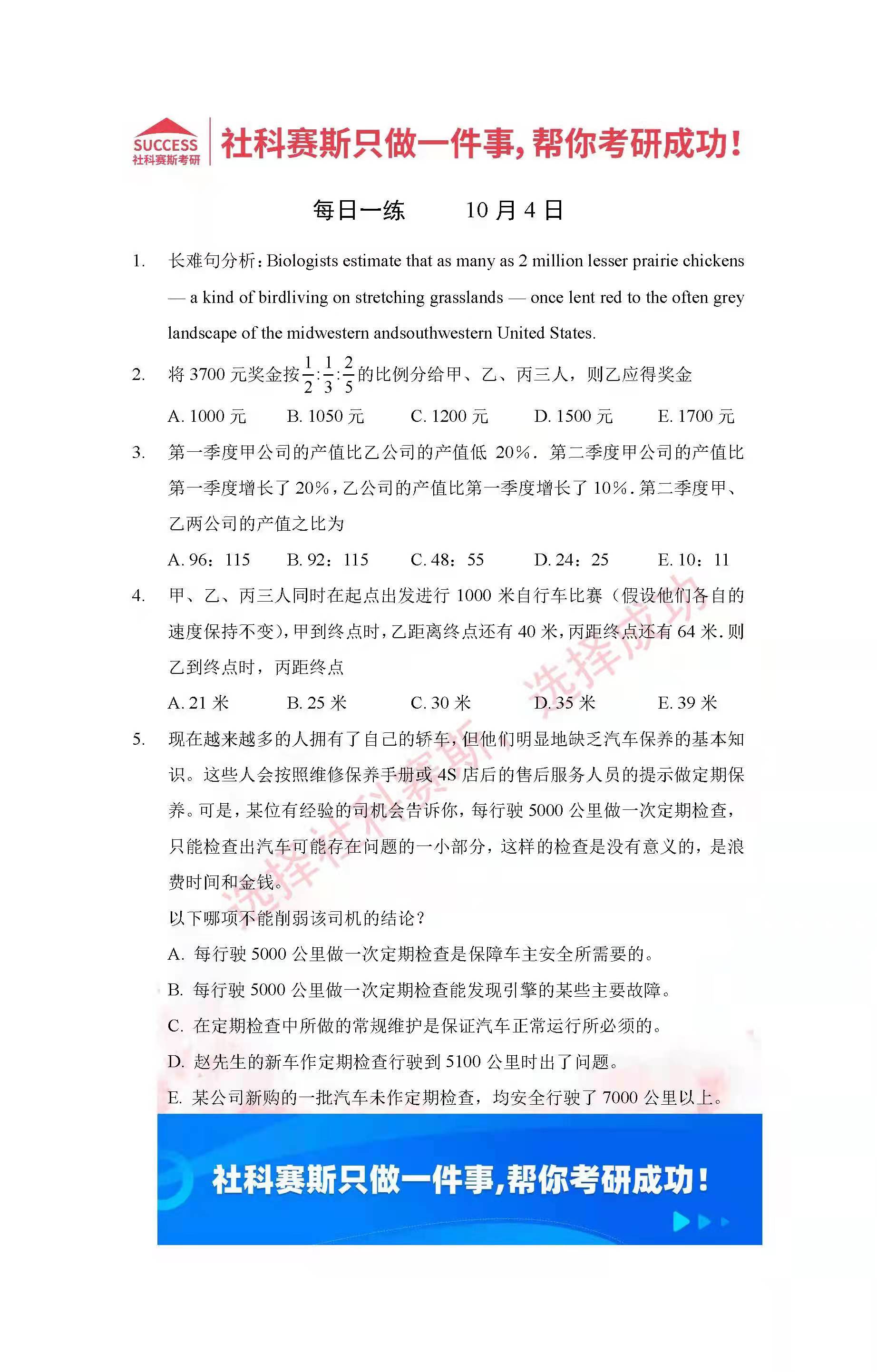 以上就是社科賽斯考研網(wǎng)小編為大家整理2022考研每日一練:10月4日管理類聯(lián)考每日一練及答案的全部內(nèi)容,希望各位考生堅持利用起來,更多每日一練內(nèi)容請持續(xù)關(guān)注社科賽斯考研網(wǎng)。