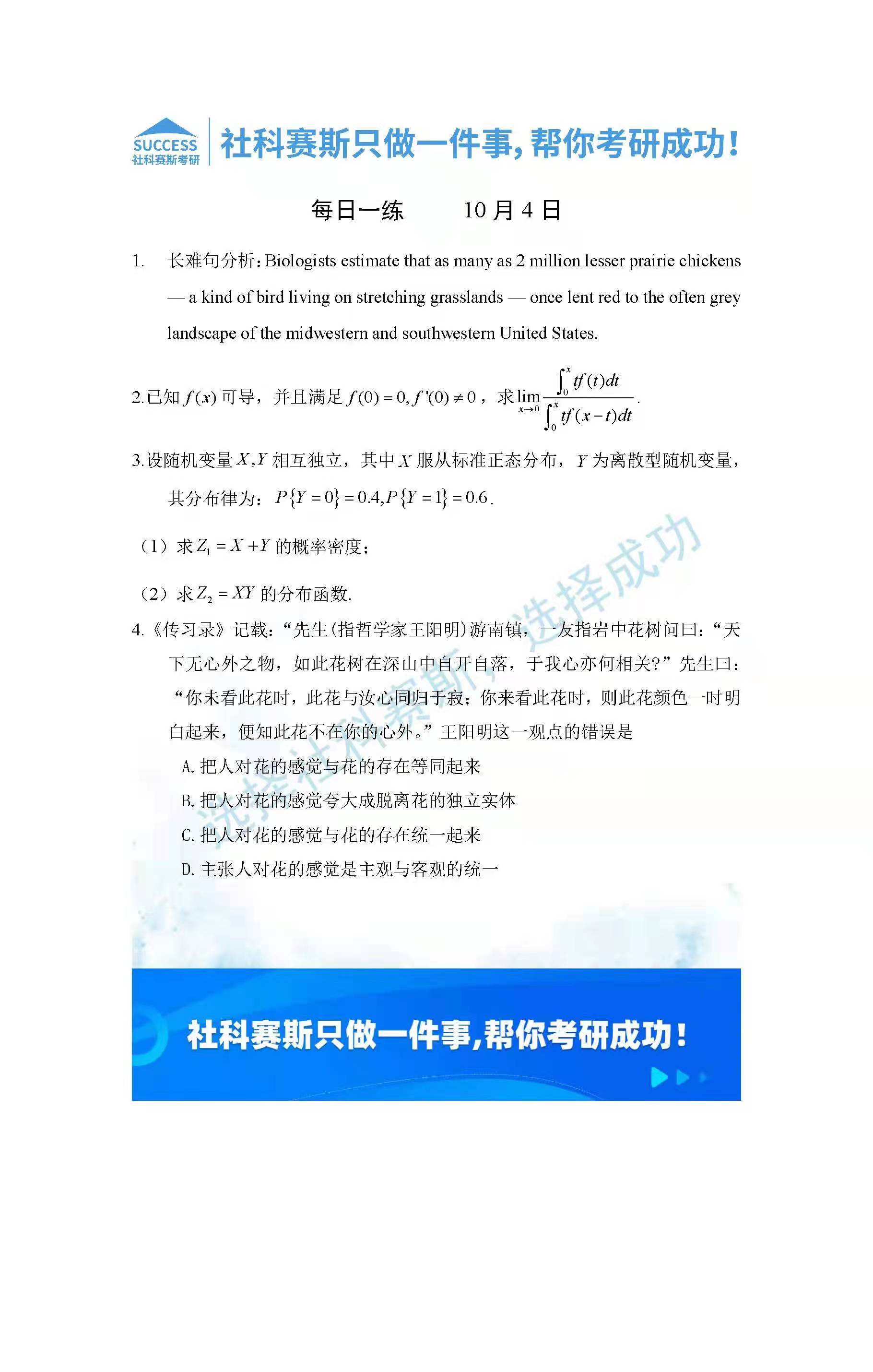 考研是一場持久戰(zhàn),保持良好的學習習慣,是能確保復習高效的關(guān)鍵。今天社科賽斯考研網(wǎng)小編整理了“2022考研每日一練:10月4日管理類聯(lián)考每日一練及答案”的內(nèi)容,希望能對廣大考生有所幫助。