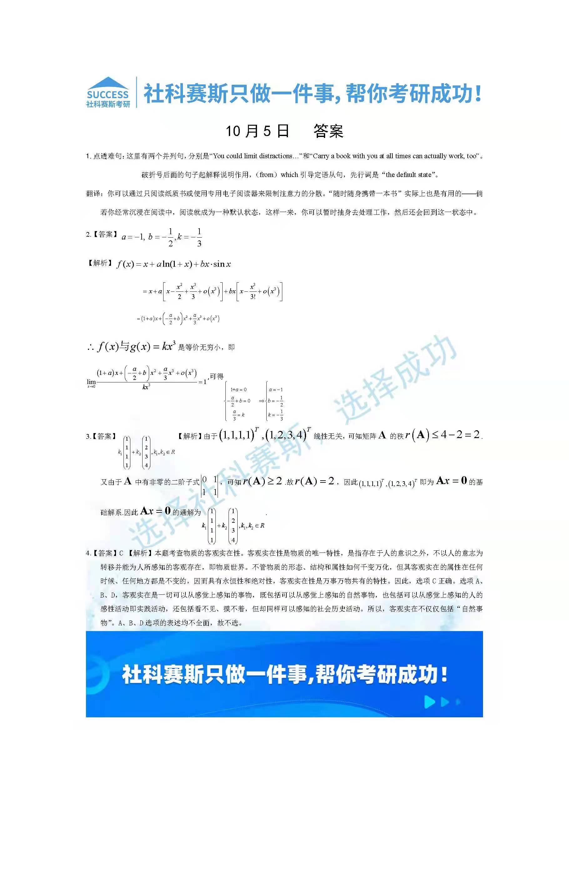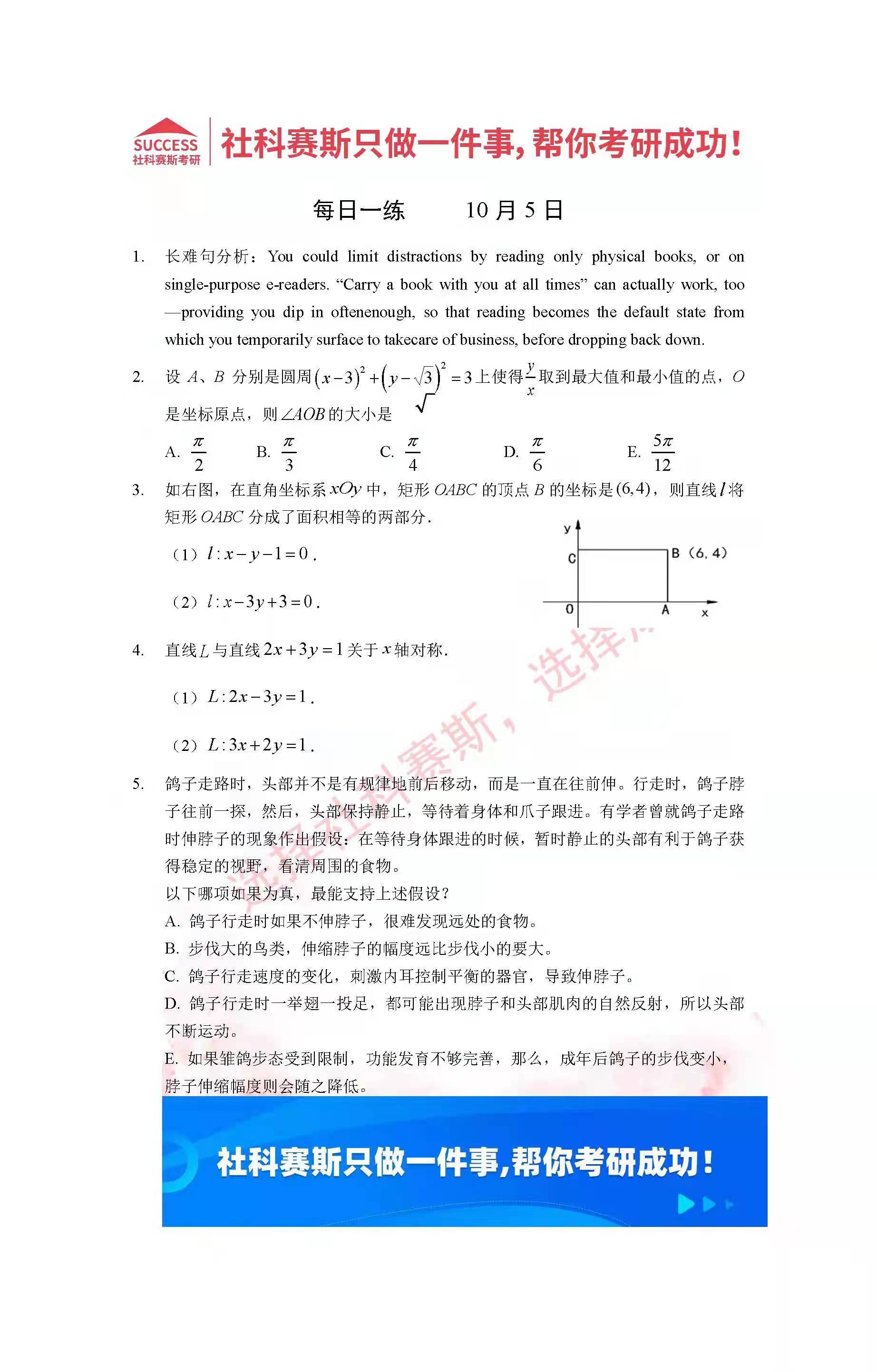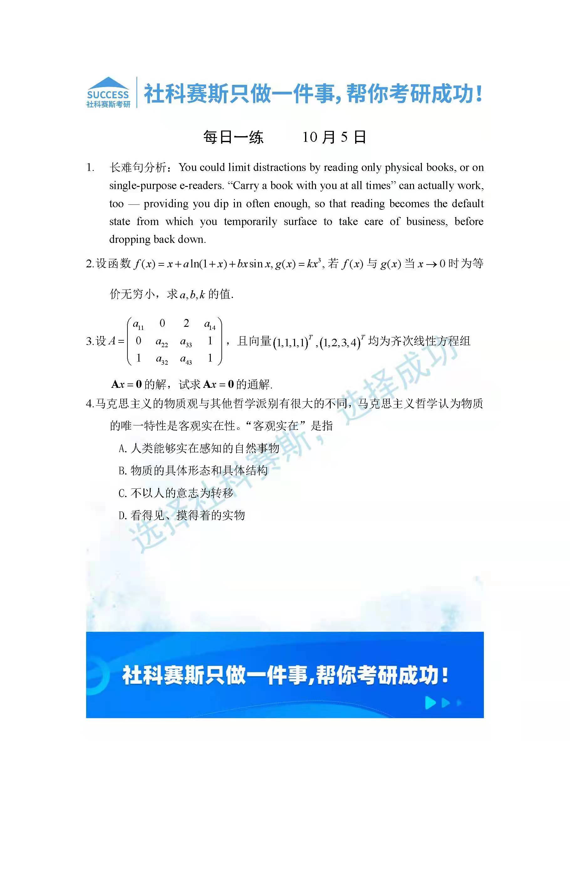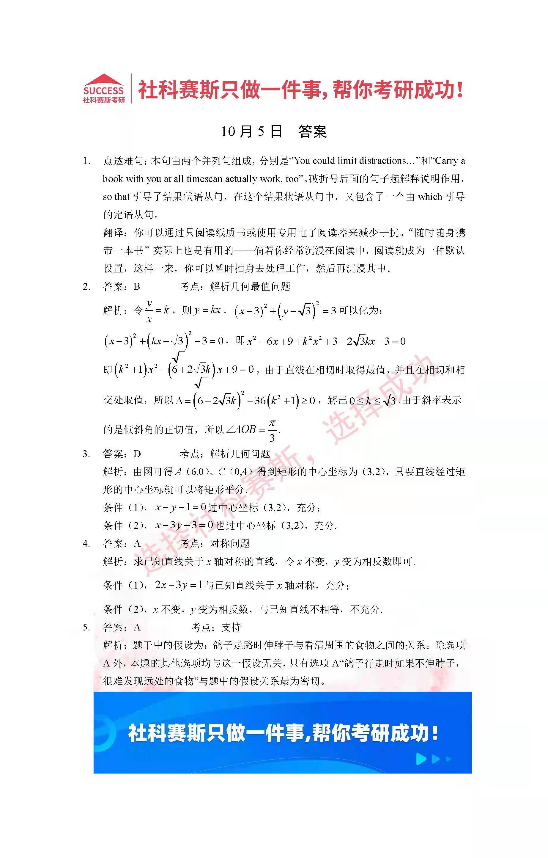 以上就是社科賽斯考研網(wǎng)小編為大家整理2022考研每日一練:10月5日管理類聯(lián)考每日一練及答案的全部?jī)?nèi)容,希望各位考生堅(jiān)持利用起來,更多每日一練內(nèi)容請(qǐng)持續(xù)關(guān)注社科賽斯考研網(wǎng)。