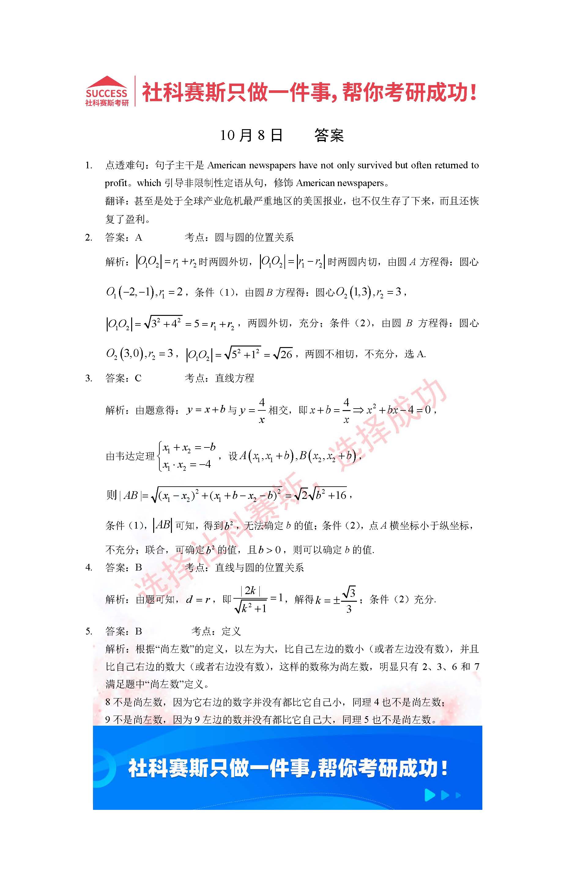 以上就是社科賽斯考研網(wǎng)小編為大家整理2022考研每日一練:10月8日管理類聯(lián)考每日一練及答案的全部內(nèi)容,希望各位考生堅持利用起來,更多每日一練內(nèi)容請持續(xù)關(guān)注社科賽斯考研網(wǎng)