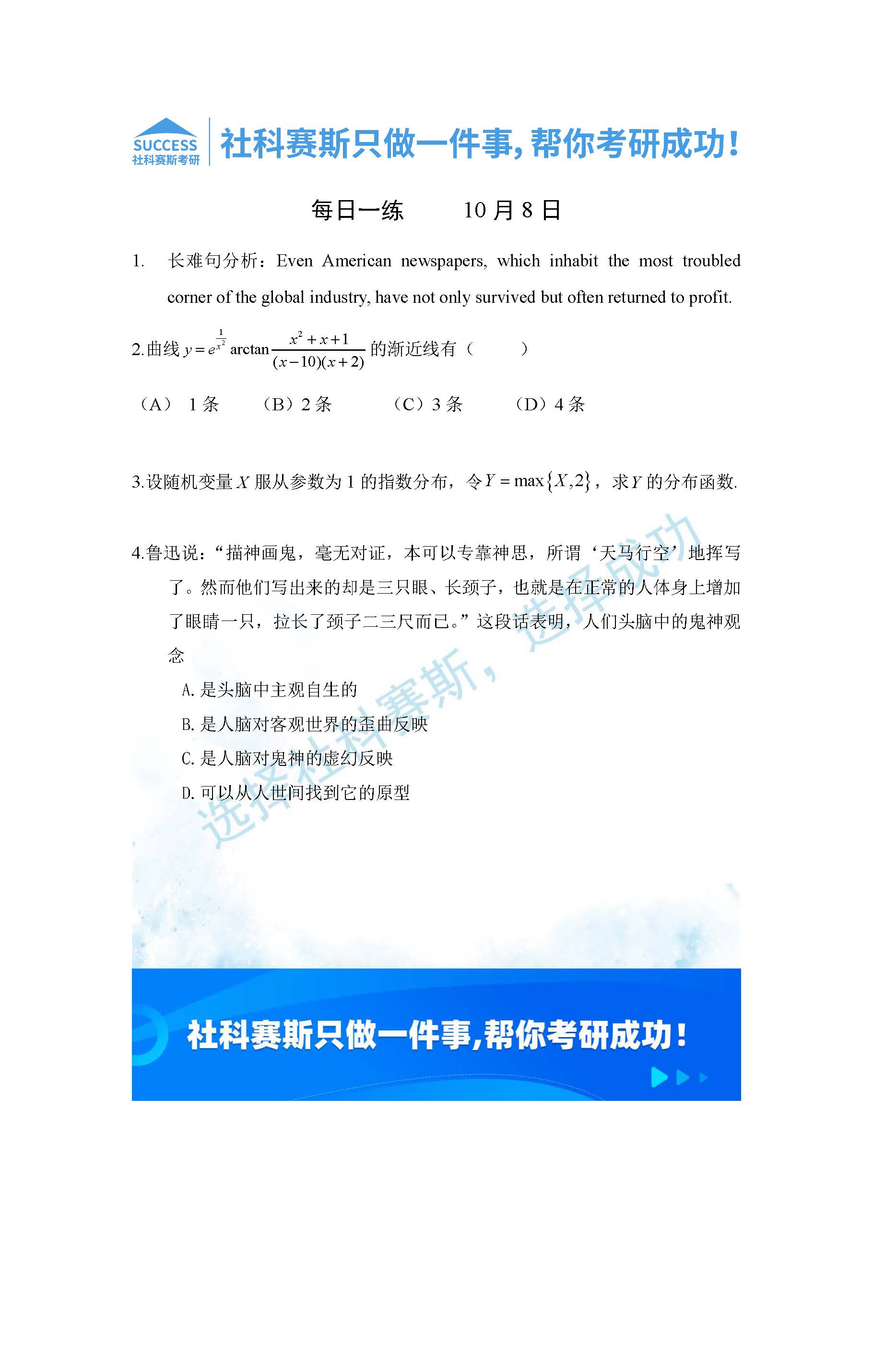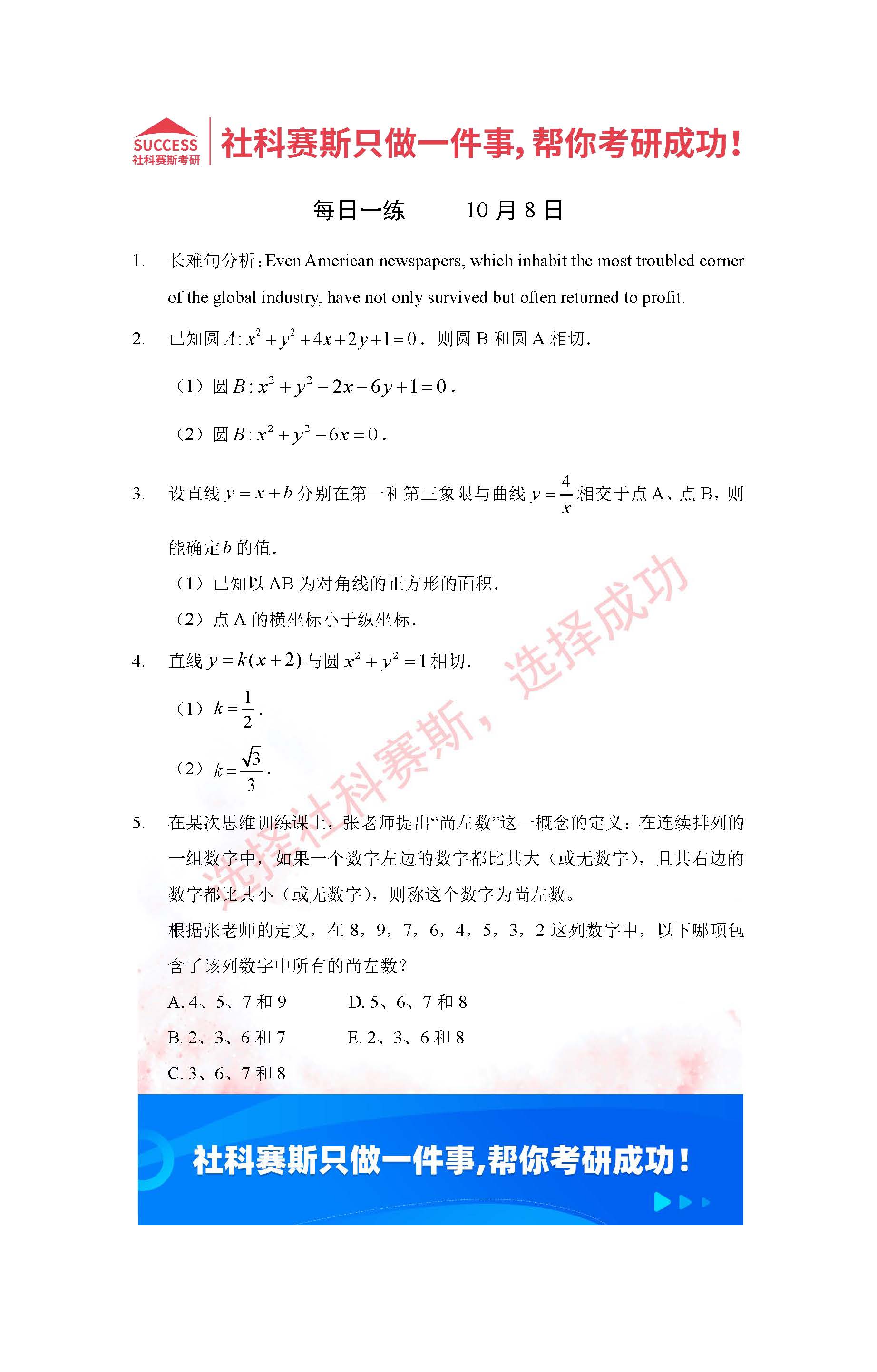 2022考研每日一練:10月8日管理類聯(lián)考每日一練及答案