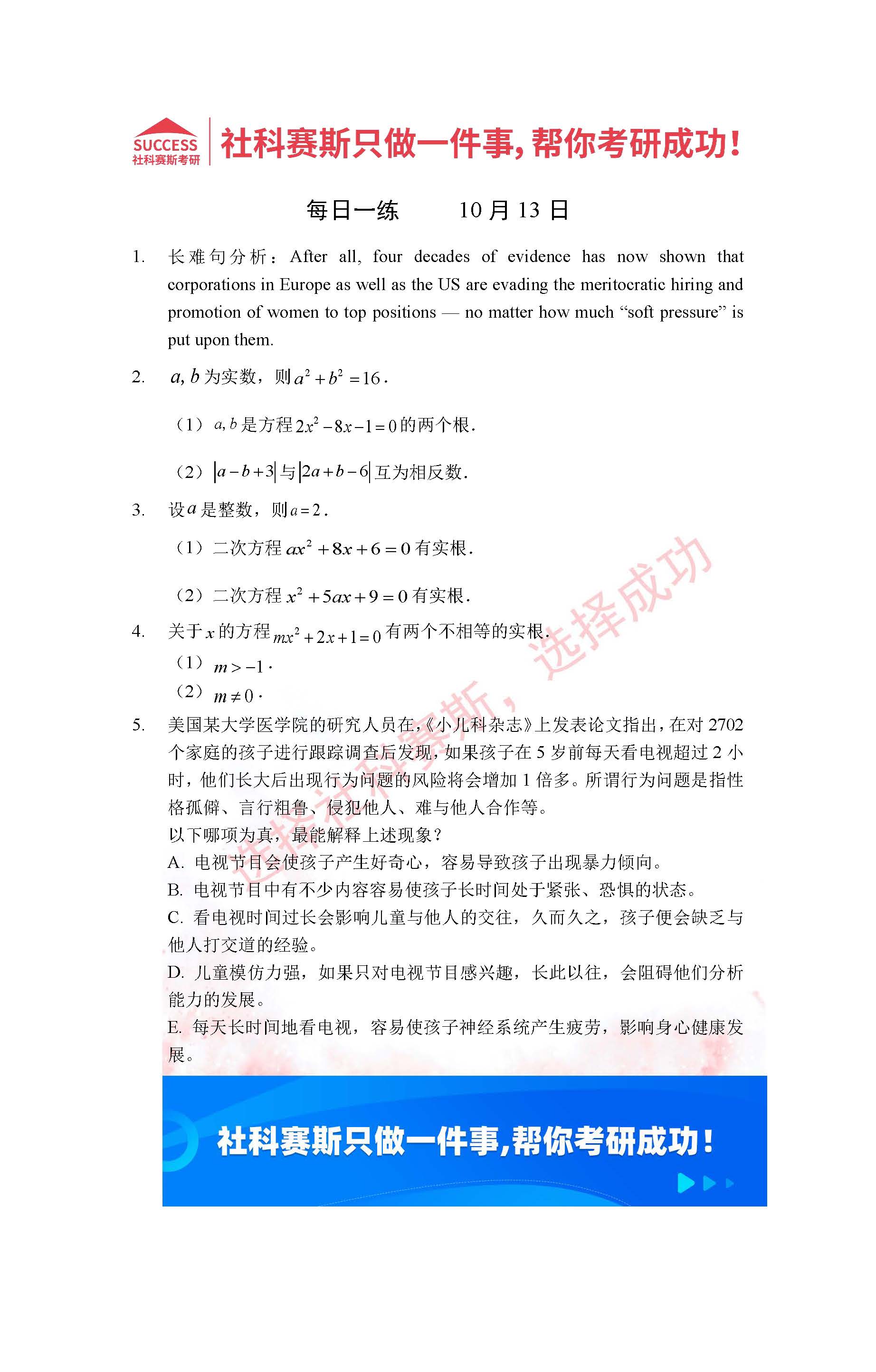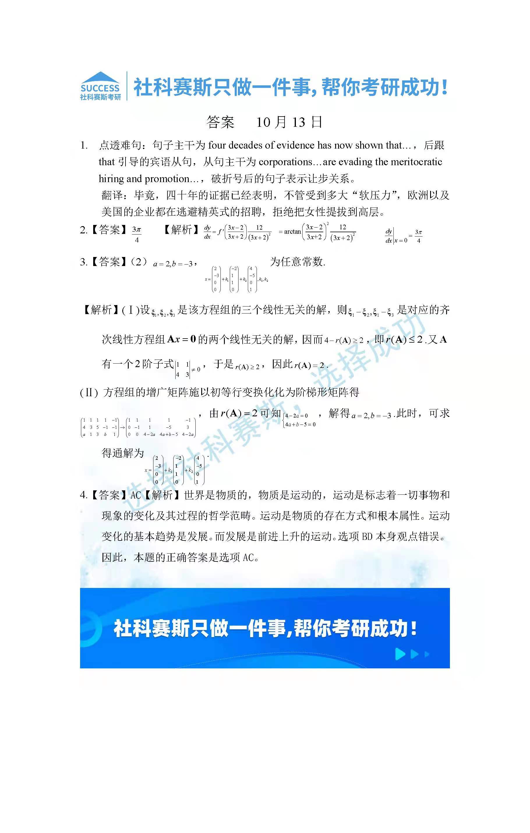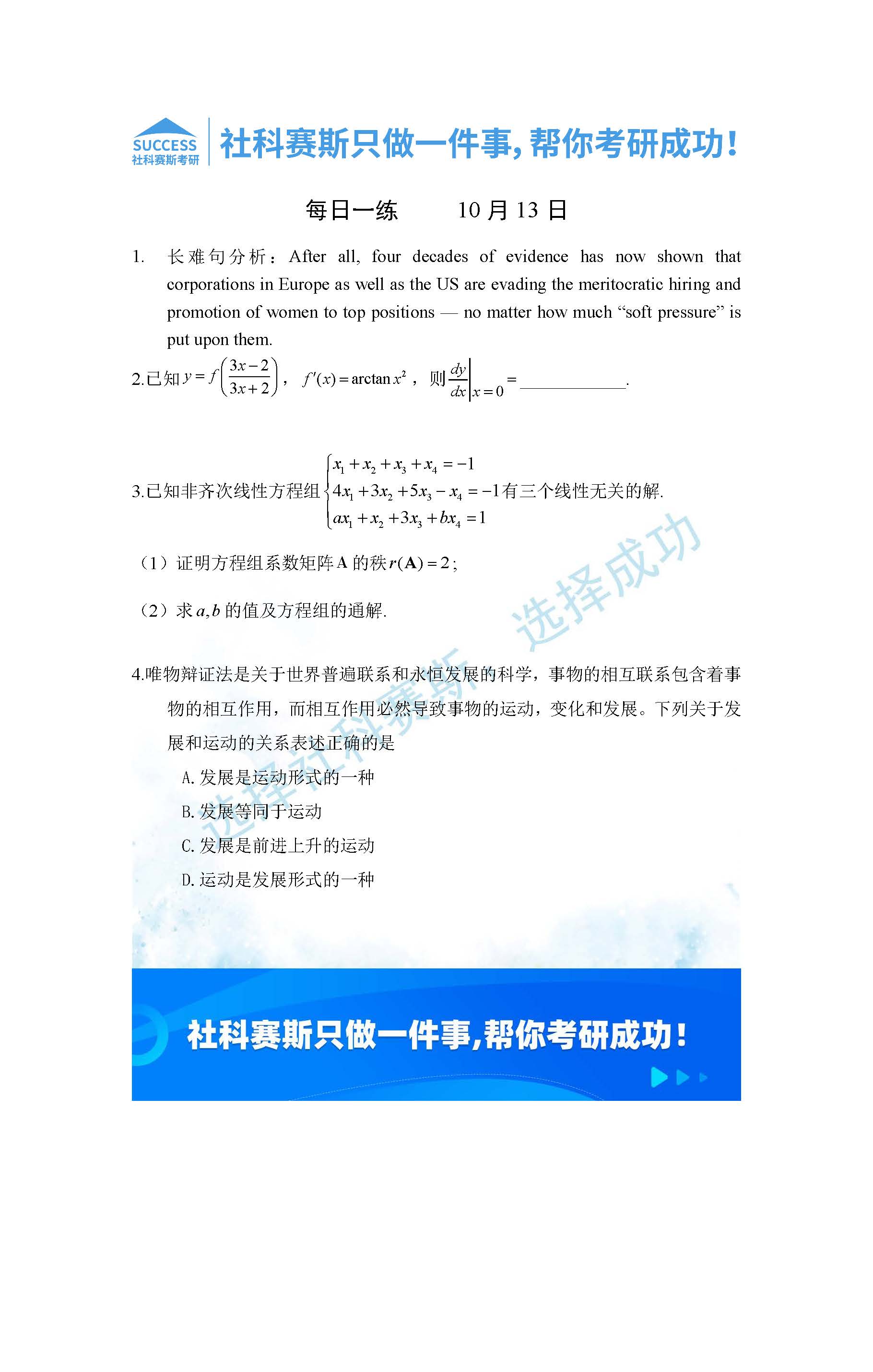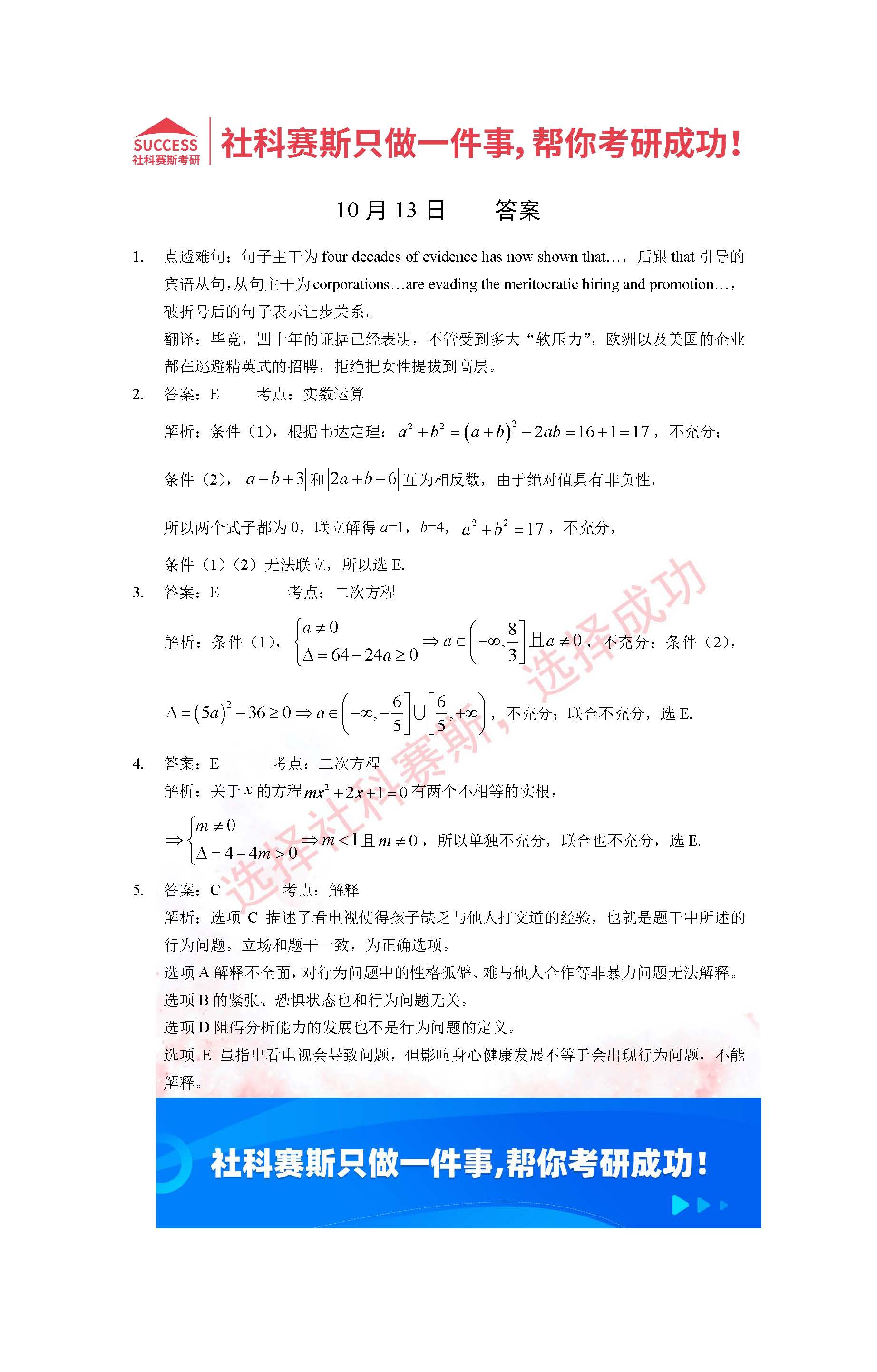 以上就是社科賽斯考研網(wǎng)小編為大家整理2022考研每日一練:10月13日管理類聯(lián)考每日一練及答案的全部內(nèi)容,希望各位考生堅持利用起來,更多每日一練內(nèi)容請持續(xù)關(guān)注社科賽斯考研網(wǎng)