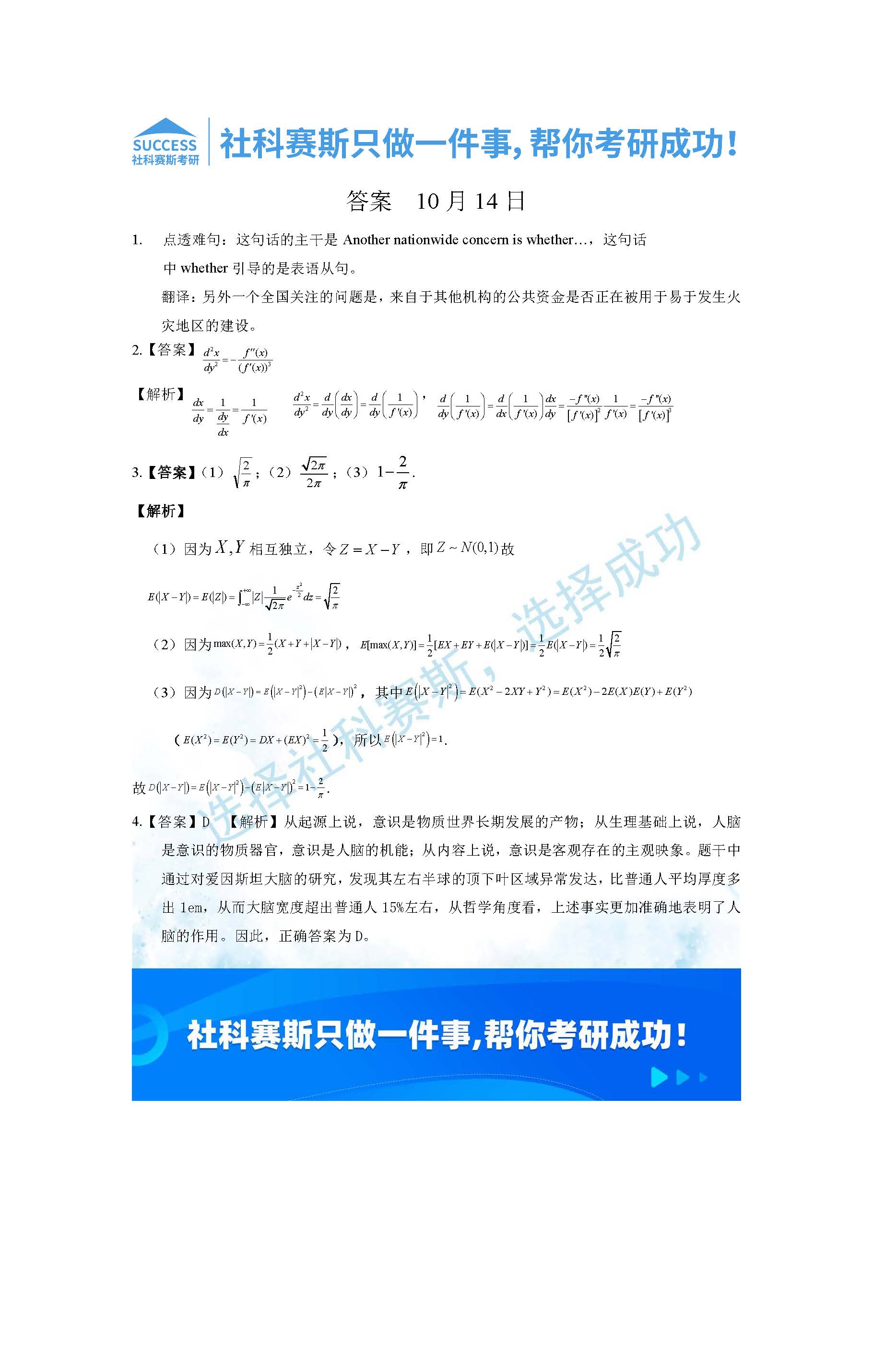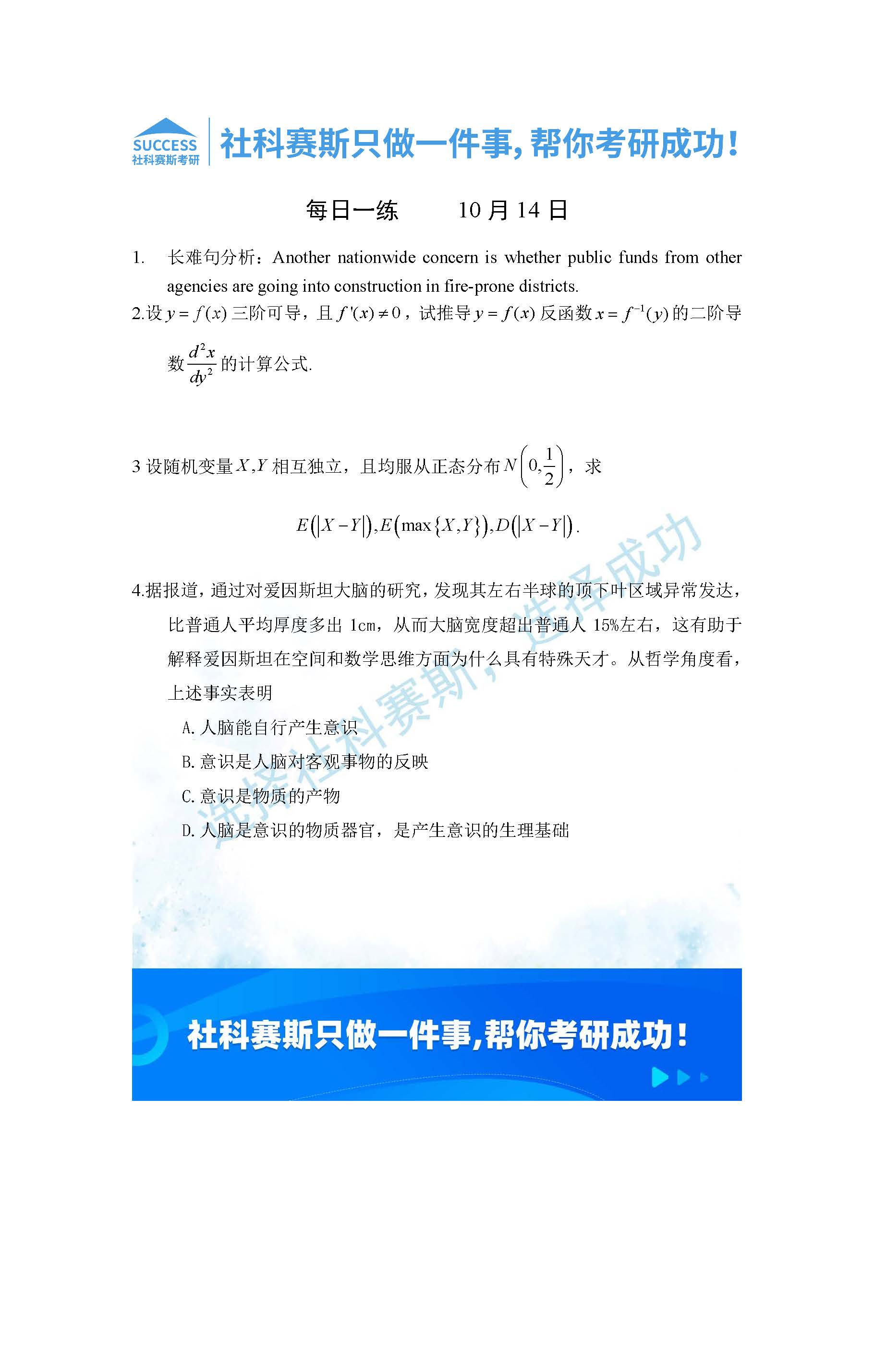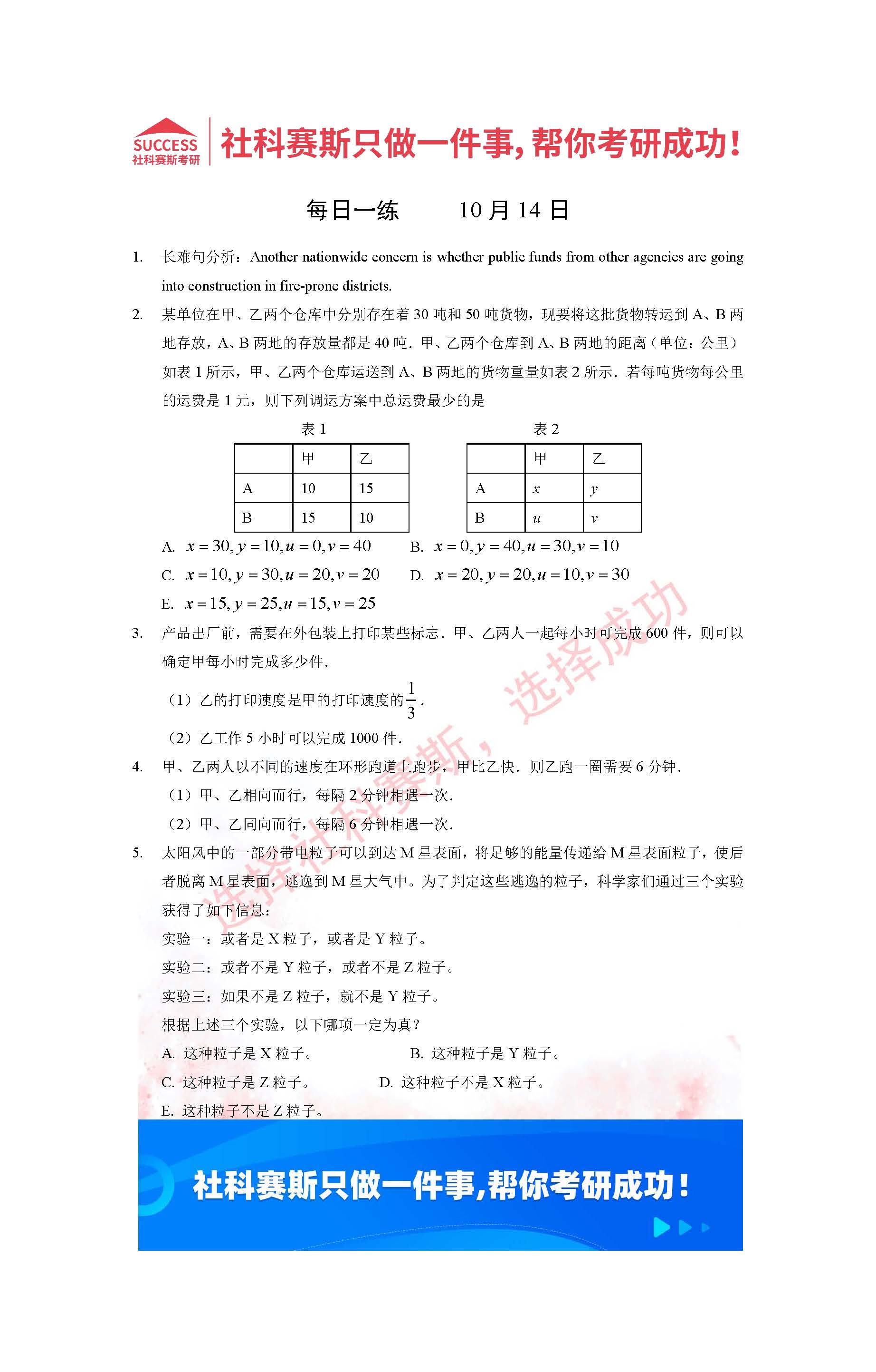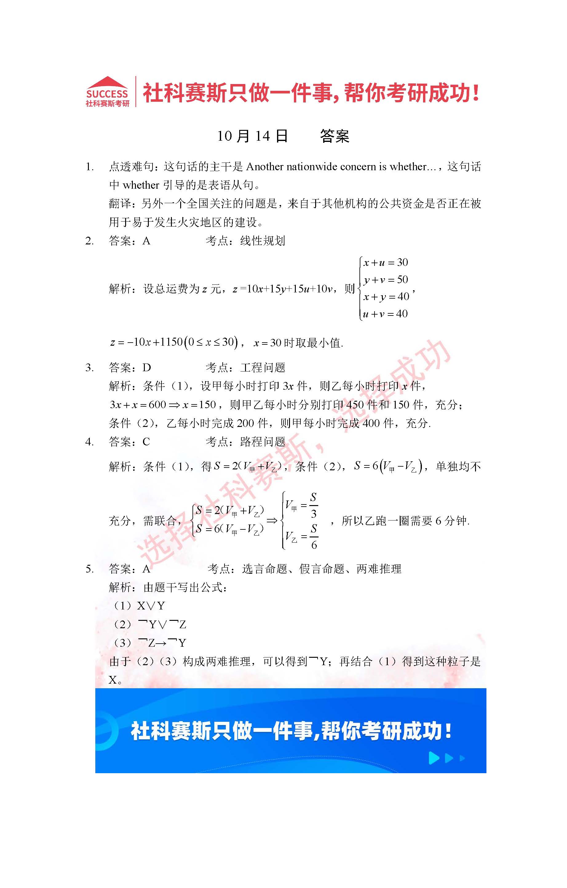 2022考研每日一練:10月14日管理類聯(lián)考每日一練及答案