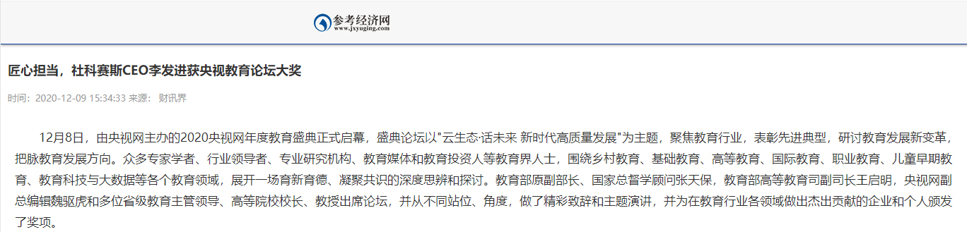 原文標題:匠心擔(dān)當(dāng),社科賽斯CEO李發(fā)進獲央視教育論壇大獎