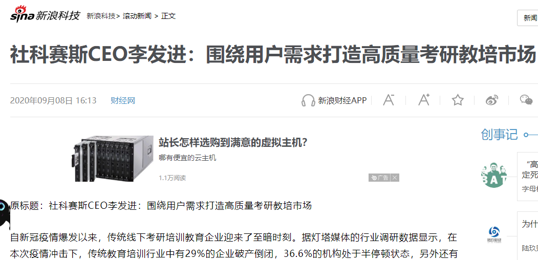 以上就是“新浪科技 | 社科賽斯CEO李發(fā)進:圍繞用戶需求打造高質(zhì)量考研教培市場”的全部內(nèi)容了,更多資訊,請持續(xù)關(guān)注社科賽斯考研網(wǎng)!