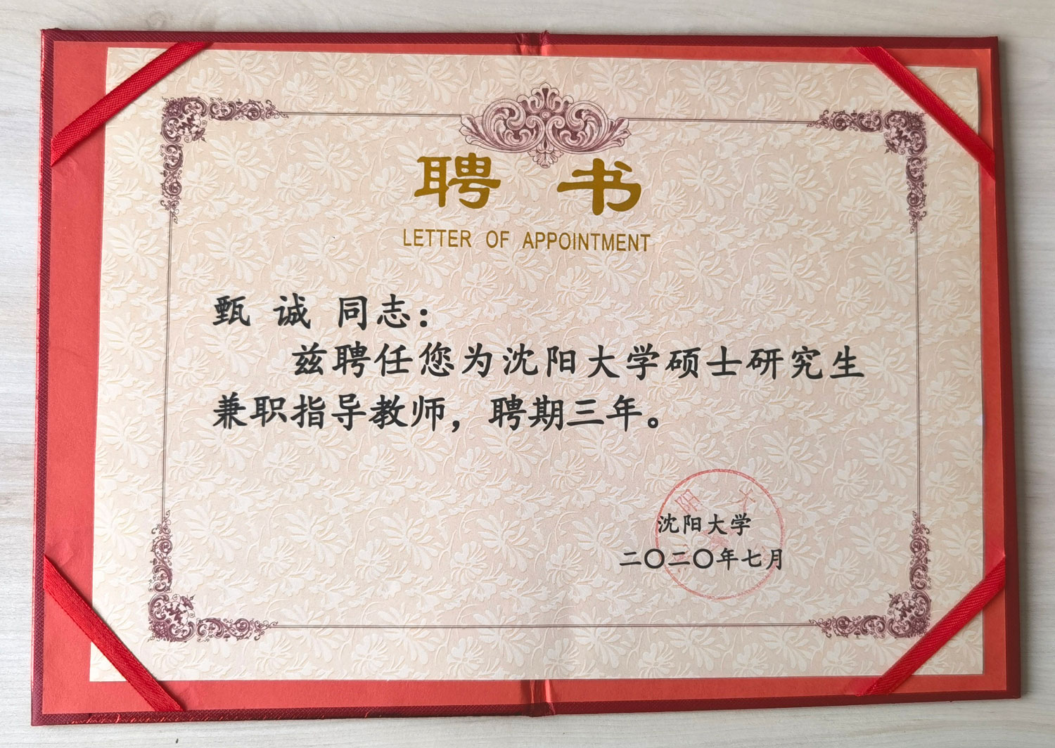 熱烈祝賀甄誠董事長聘任為沈陽大學(xué)碩士研究生兼職指導(dǎo)教師,聘期三年!