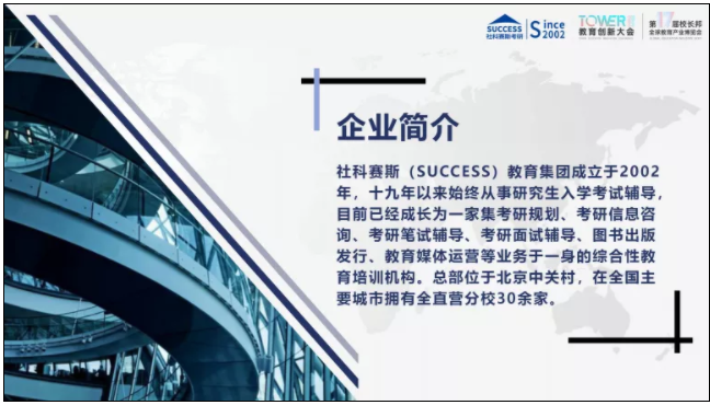 這是我的個人簡介。我現(xiàn)在是北京社科賽斯教育集團(tuán)的CEO兼黨支部書記。黨支部書記在教育類公司顯得很另類,但其實(shí)北京的公司基本都要成立黨支部。我所了解的,像新東方、好未來,他們都有黨委。黨要把所有企業(yè)都納入一體管理。同時我也是中關(guān)村教育培訓(xùn)協(xié)會的副會長、北京市海淀區(qū)紅帆新聯(lián)會的理事。大家都知道有黨代表、人大代表、政協(xié)代表,現(xiàn)在有新聯(lián)會這樣的組織。