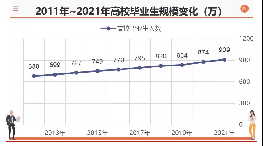 圖4:2011~2021年高校畢業(yè)生規(guī)模變化(數(shù)據(jù)源自:教育部)