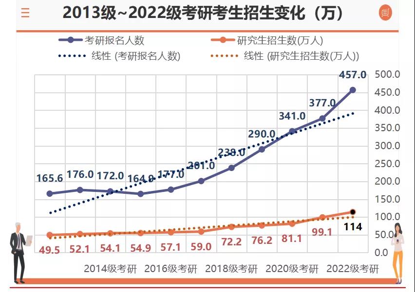 疫情反復(fù)無(wú)常、國(guó)內(nèi)外政治經(jīng)濟(jì)形勢(shì)嚴(yán)峻、招聘需求下降、崗位競(jìng)爭(zhēng)加大等因素,提升了就業(yè)難度及就業(yè)期望的同時(shí),促使越來(lái)越多的應(yīng)屆、往屆畢業(yè)生,不得不通過(guò)再獲取一個(gè)碩士學(xué)位增加自己就業(yè)競(jìng)爭(zhēng)力,或選擇考研暫避風(fēng)頭。