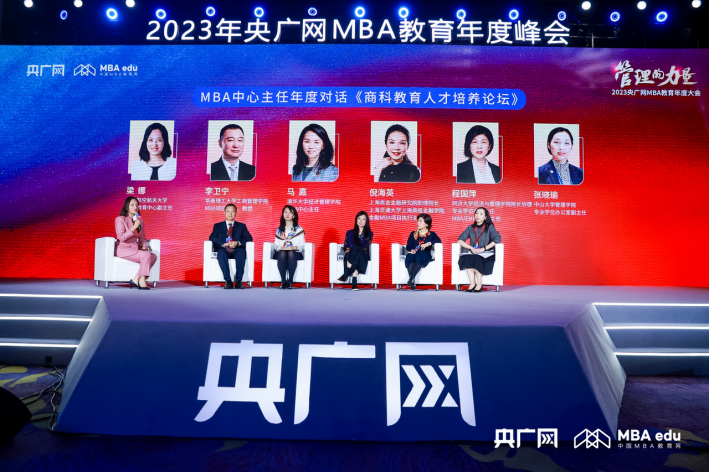 胸懷“國之大者”,共創(chuàng)商科高地。2023年12月2日,由央廣網(wǎng)主辦,中國MBA教育網(wǎng)承辦的“2023央廣網(wǎng)MBA教育年度大會暨管理的力量論壇”在京隆重舉辦。本次大會包含主旨演講、商學(xué)院院長年度對話、MBA中心主任年度對話、2023年度商科教育致敬榜單發(fā)布環(huán)節(jié)。浙江工商大學(xué)校長、國家杰出青年基金獲得者、教育部長江學(xué)者特聘教授、國務(wù)院學(xué)位委員會工商管理學(xué)科評議組成員、教育部高等學(xué)校工商管理類專業(yè)教學(xué)指導(dǎo)委員會委員王永貴教授,中國科學(xué)技術(shù)大學(xué)管理學(xué)院執(zhí)行院長,國際金融研究院院長、科技商學(xué)院執(zhí)行院長,全國MBA教育指導(dǎo)委員會委員葉強(qiáng)教授,南開大學(xué)商學(xué)院院長,國務(wù)院學(xué)位委員會工商管理學(xué)科評議組成員白長虹教授,西安交通大學(xué)管理學(xué)院院長、全國MBA教育指導(dǎo)委員會委員馮耕中教授等商科教育領(lǐng)軍人物、院校代表、校友代表等共襄盛會,圍繞“管理的力量”主題,以多元視角和前瞻視野對中國商科教育進(jìn)行深度觀察,為推動新時代下商科教育發(fā)展注入新理念、新動力、新勢能。