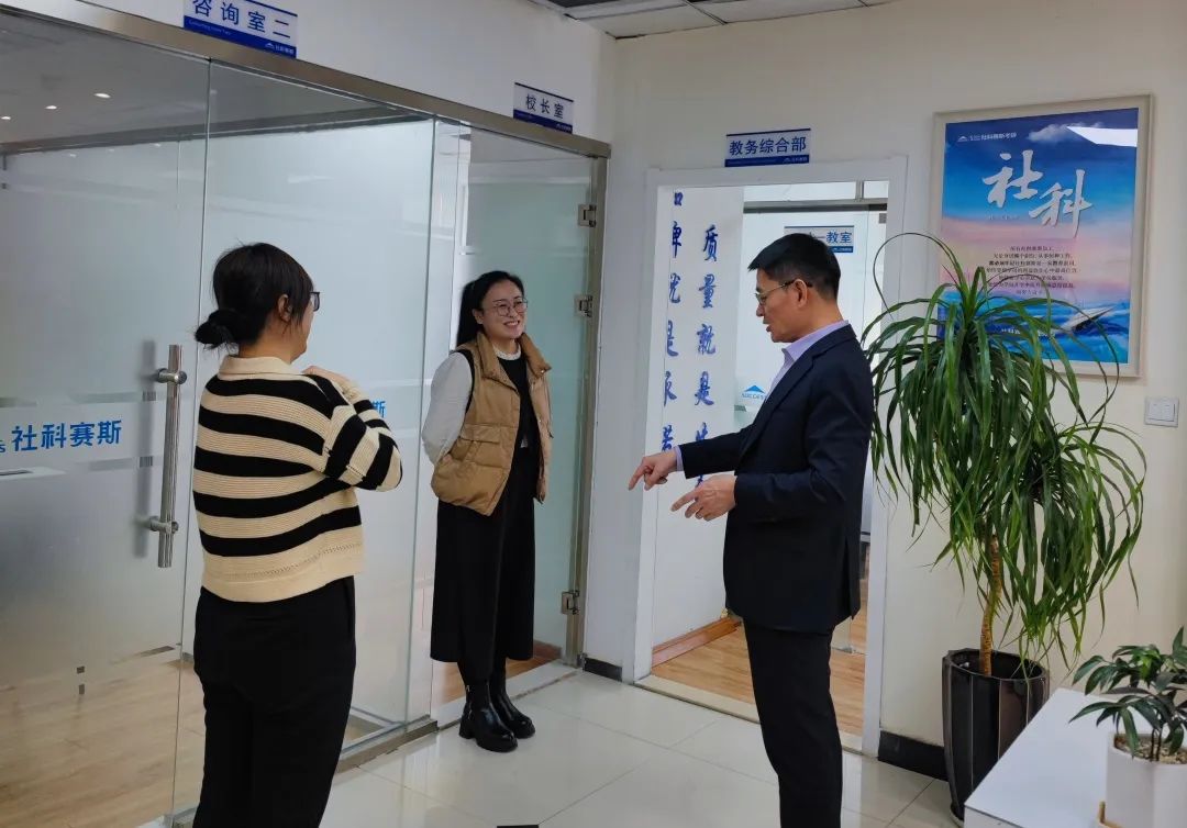 李發(fā)進(jìn)校長(zhǎng)首先對(duì)社科賽斯大連分校的工作環(huán)境、教學(xué)進(jìn)展進(jìn)行了詳細(xì)的視察和了解。在視察過程中,他充分肯定了社科賽斯大連分校的工作成果和團(tuán)隊(duì)努力,同時(shí)強(qiáng)調(diào)了持續(xù)改進(jìn)和提升教學(xué)質(zhì)量的重要性。