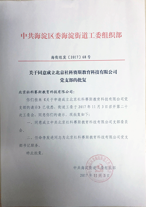 關(guān)于同意成立社科賽斯黨支部的批復(fù)