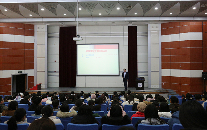 聘任儀式后,郭炎宏從財(cái)經(jīng)類大學(xué)生職業(yè)生涯規(guī)劃的角度為學(xué)生講授了考研全程規(guī)劃和備考策略。