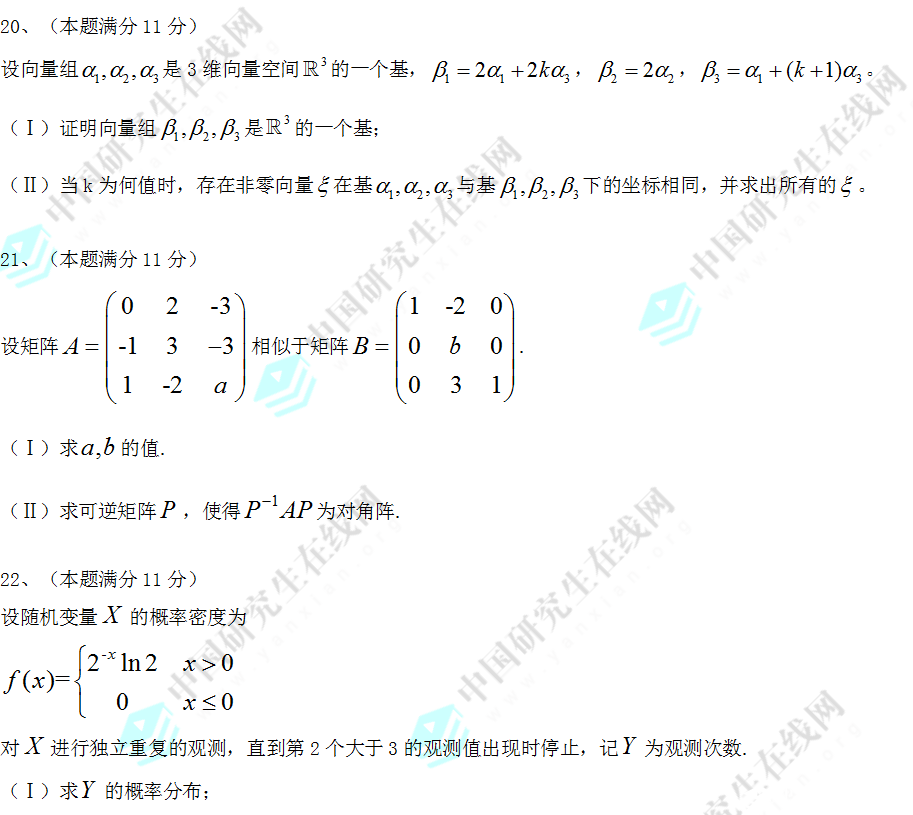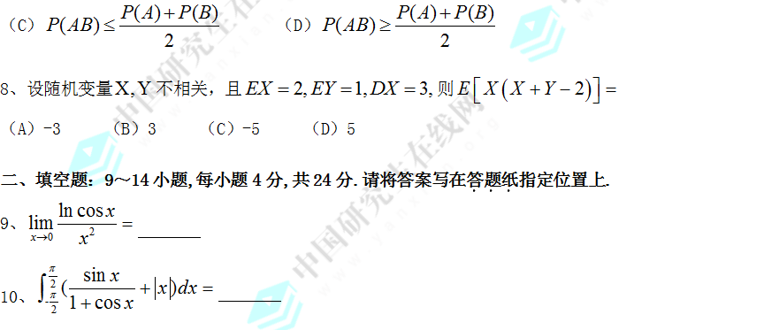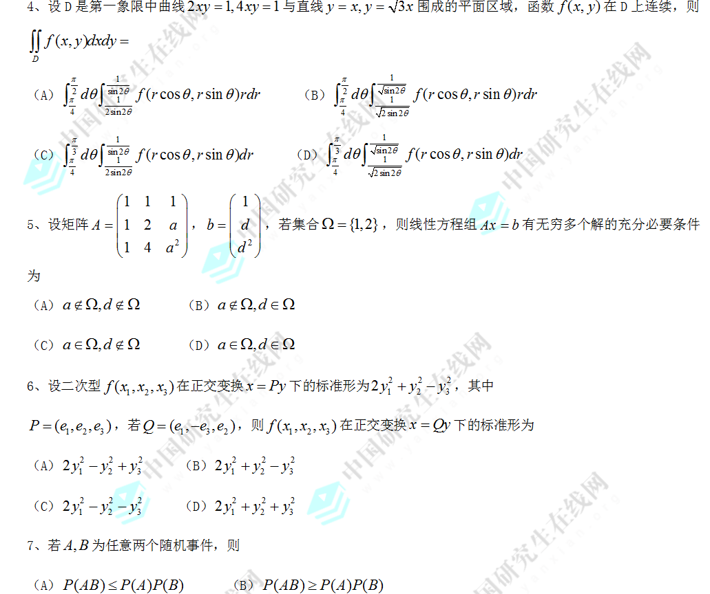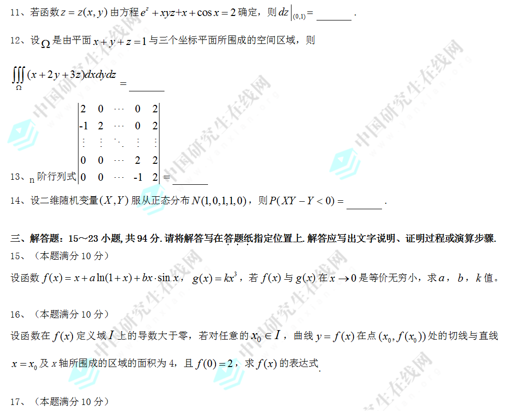 2015年全國碩士研究生入學(xué)統(tǒng)一考試數(shù)學(xué)(一)真題