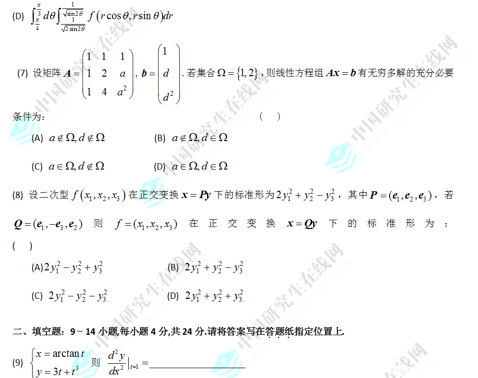 2015年全國碩士研究生入學(xué)統(tǒng)一考試數(shù)學(xué)(二)真題