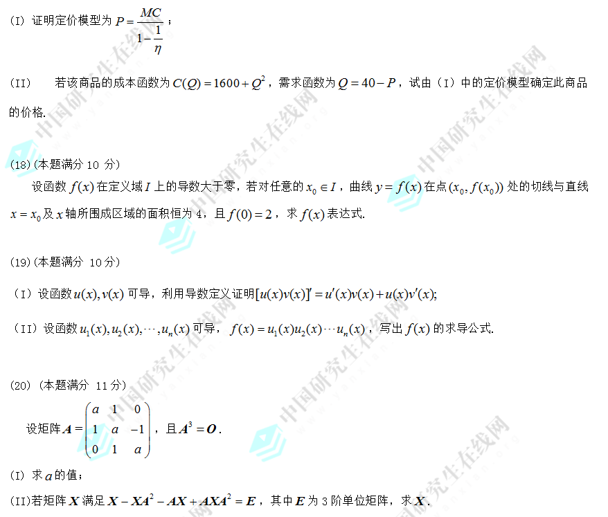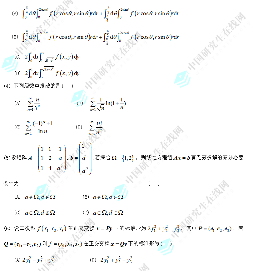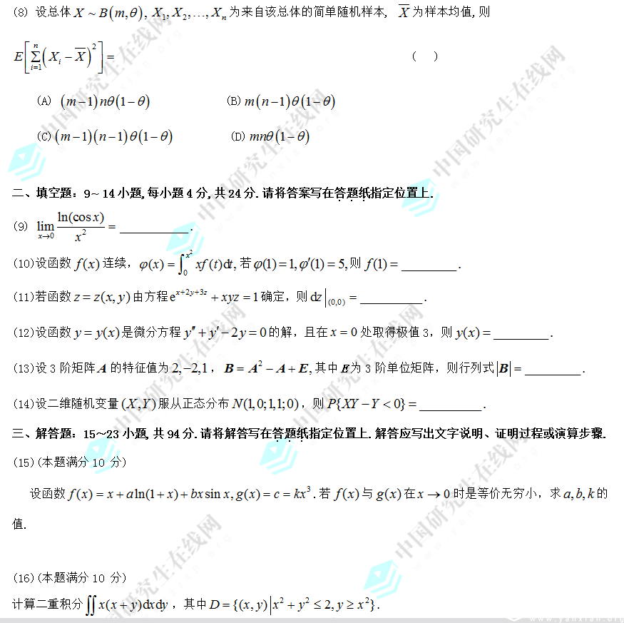 當(dāng)前位置: 考研數(shù)學(xué) > 數(shù)學(xué)真題 > 2015年全國碩士研究生入學(xué)統(tǒng)一考試數(shù)學(xué)(三)真題