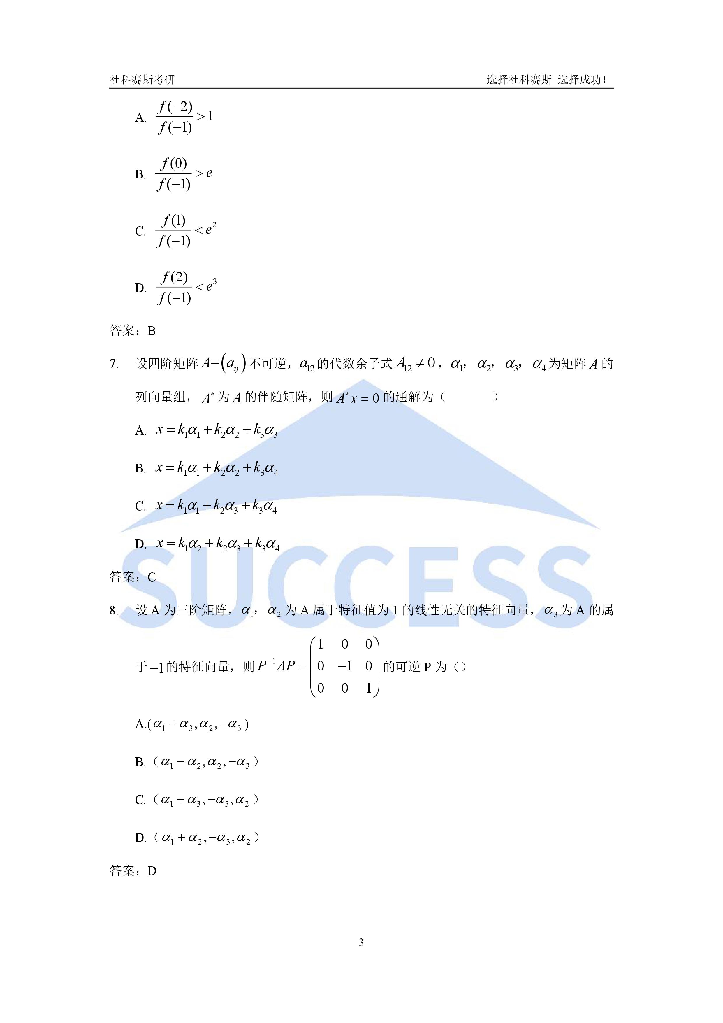 2020年全國(guó)碩士研究生考試考研數(shù)學(xué)(二)真題及解析