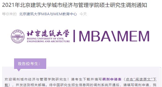 2021MBA調(diào)劑:北京建筑大學MBA/MEM專業(yè)調(diào)劑通知”,更多