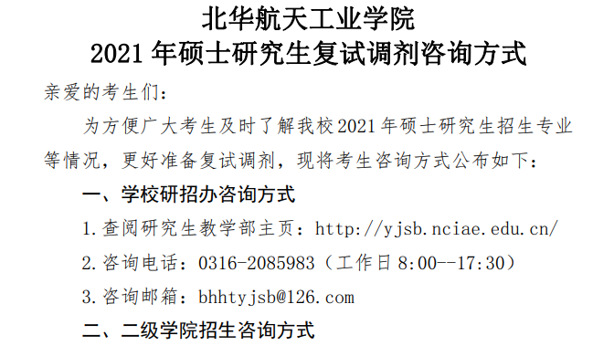 2021考研調(diào)劑:北華航天工業(yè)學(xué)院復(fù)試調(diào)劑咨詢方式”的全部?jī)?nèi)容。