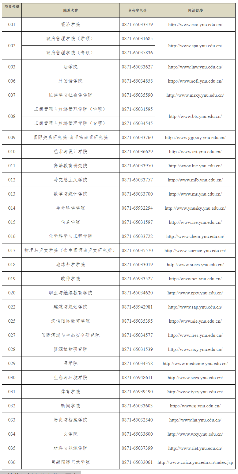 四、云南大學(xué)各培養(yǎng)單位聯(lián)系方式