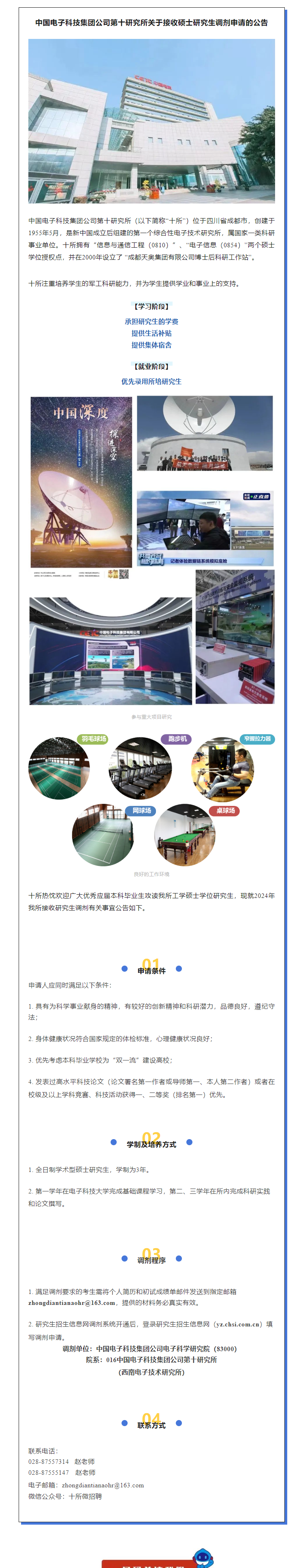 2024考研調(diào)劑:中國電子科技集團(tuán)公司第十研究所2024年關(guān)于接收碩士研究生調(diào)劑申請的公告