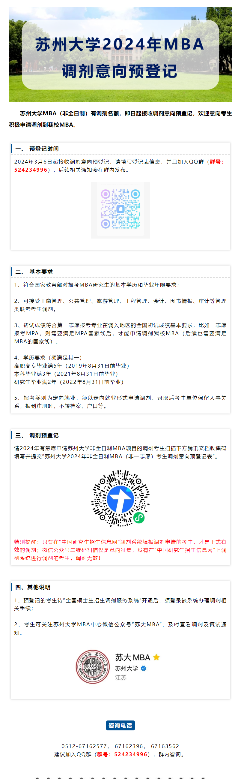 2024考研預(yù)調(diào)劑:蘇州大學(xué)2024年MBA調(diào)劑意向預(yù)登記