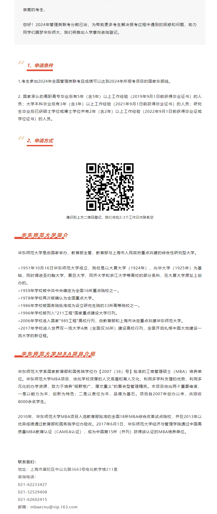 2024考研調(diào)劑:2024年華東師范大學(xué)MBA入學(xué)意向登記