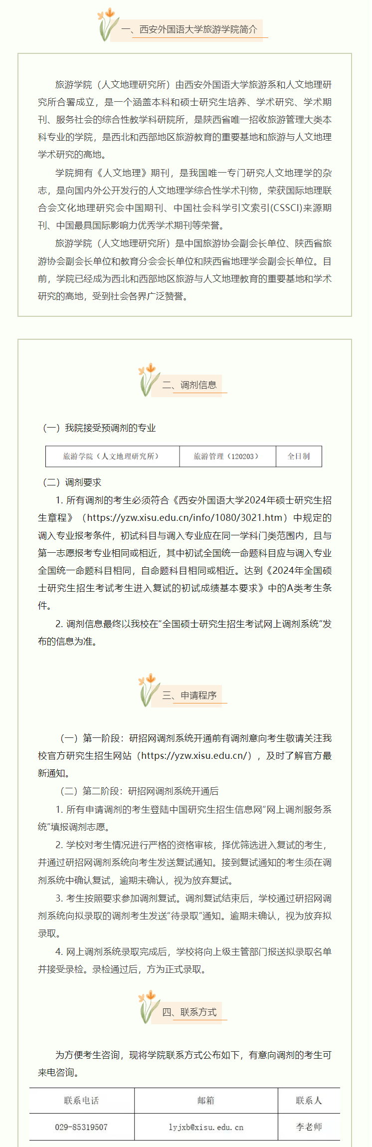 2024考研調(diào)劑:西安外國語大學(xué)旅游學(xué)院(人文地理研究所)2024年碩士研究生招生調(diào)劑公告