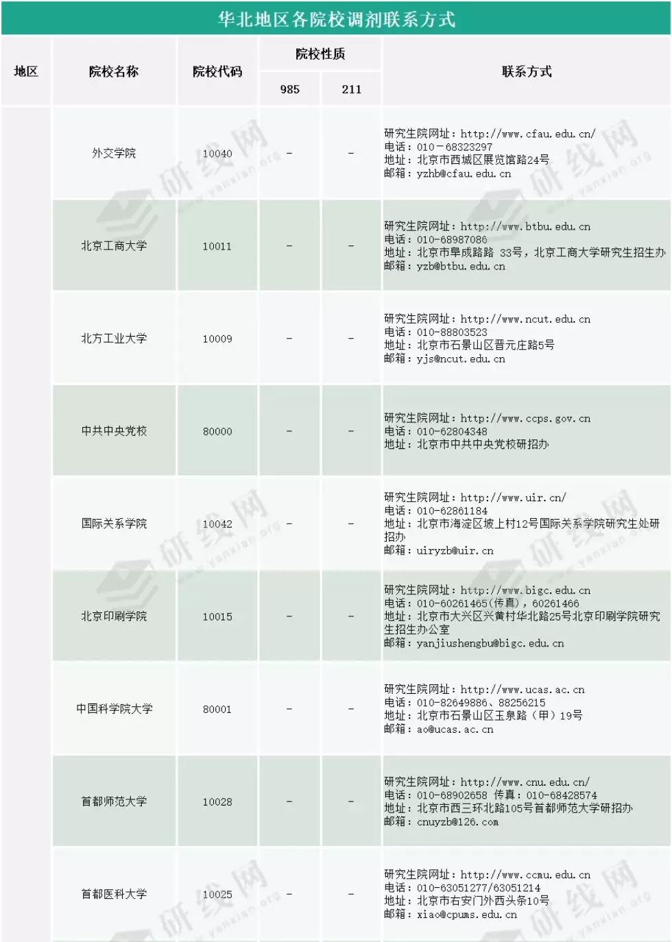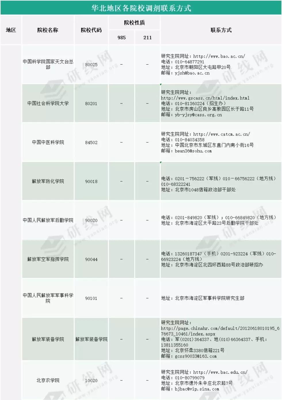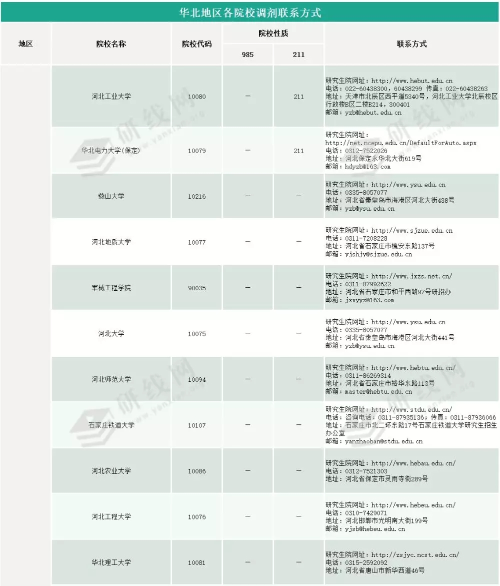 初試成績(jī)已經(jīng)公布!不管你是很好,還是還行,又或者是涼涼,萬(wàn)不可掉以輕心,各院校的調(diào)劑信息、復(fù)試信息都要時(shí)刻注意!今天,研線網(wǎng)小編給大家?guī)?lái)“華北地區(qū)院校調(diào)劑聯(lián)系方式查詢!”,希望能給予你們一點(diǎn)幫助!