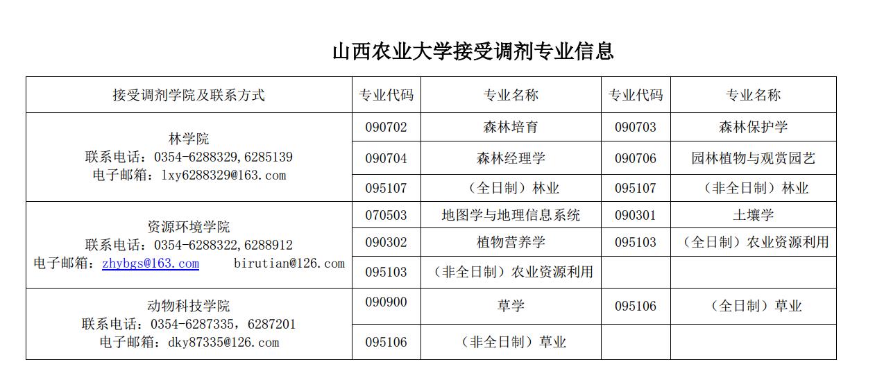 2017年山西農(nóng)業(yè)大學(xué)接受調(diào)劑專業(yè)信息