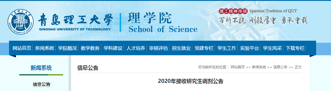 青島理工大學(xué)理學(xué)院2020年接收研究生調(diào)劑公告