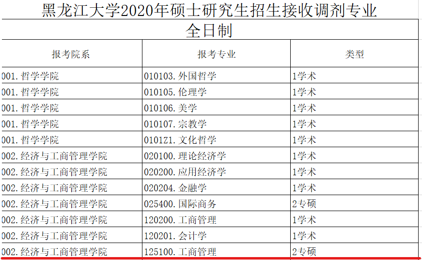 黑龍江大學(xué)2020年碩士招生擬接收調(diào)劑專業(yè)信息公告