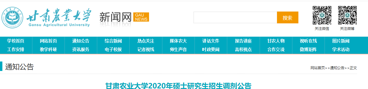原標題: 甘肅農(nóng)業(yè)大學2020年碩士研究生招生調(diào)劑公告