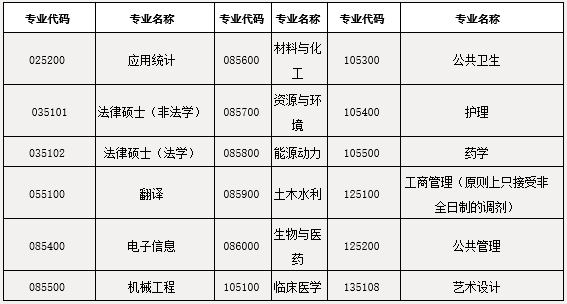 我校擬接收調(diào)劑的一級(jí)學(xué)科專業(yè)見表1,擬接收調(diào)劑的專業(yè)學(xué)位類別見表2.