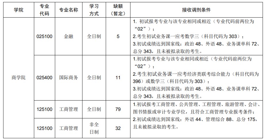 3.除附件中公布的接收調(diào)劑的專(zhuān)業(yè)外,我校將根據(jù)復(fù)試錄取情況,陸續(xù)發(fā)布復(fù)試后需要接收調(diào)劑的其它專(zhuān)業(yè)情況,請(qǐng)關(guān)注我校研究生院及各招生學(xué)院網(wǎng)站通知。