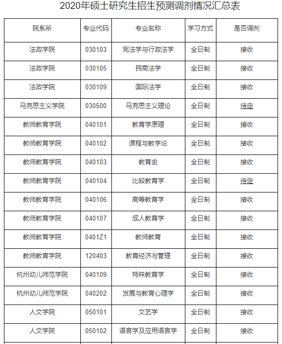 以上就是“2020考研調(diào)劑信息:浙江師范大學(xué)2020年碩士研究生招生調(diào)劑信息”的全部?jī)?nèi)容!更多考研調(diào)劑內(nèi)容,請(qǐng)關(guān)注考研調(diào)劑信息欄目