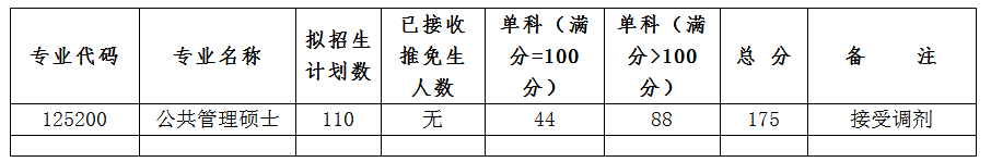 6.我單位公共管理碩士(MPA)專業(yè)尚有生源缺額,歡迎達(dá)到我單位復(fù)試分?jǐn)?shù)線,具有優(yōu)良本科教育背景和科研訓(xùn)練經(jīng)歷的優(yōu)秀考生調(diào)劑,具體調(diào)劑信息請(qǐng)關(guān)注本單位網(wǎng)站,并通過(guò)“全國(guó)碩士研究生招生調(diào)劑服務(wù)系統(tǒng)”進(jìn)行。