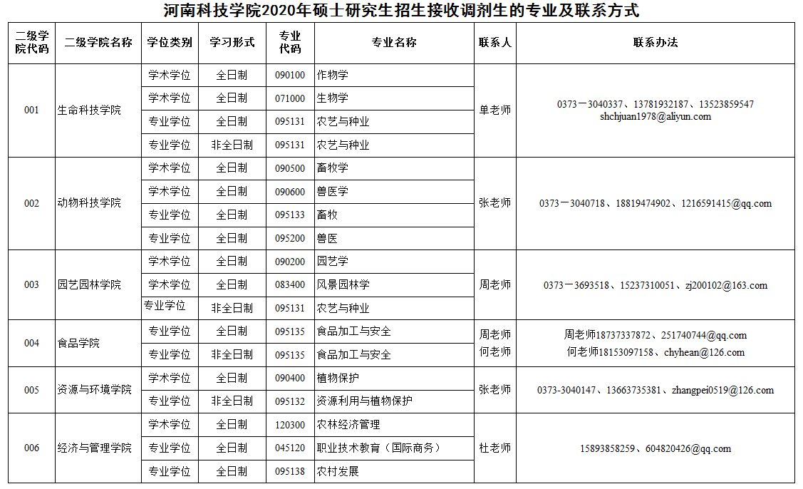 原標(biāo)題:河南科技學(xué)院2020年碩士研究生招生調(diào)劑公告