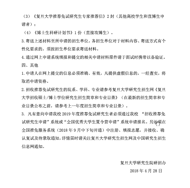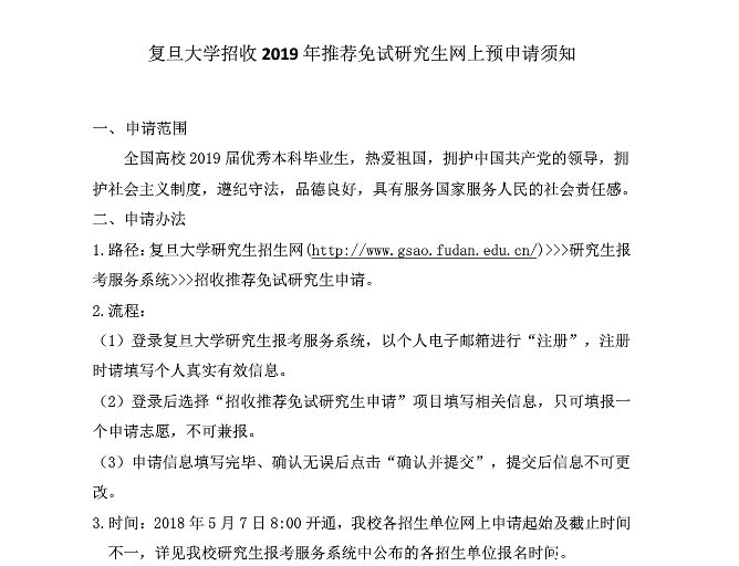 復(fù)旦大學(xué)招收2019年推薦免試研究生網(wǎng)上預(yù)申請須知