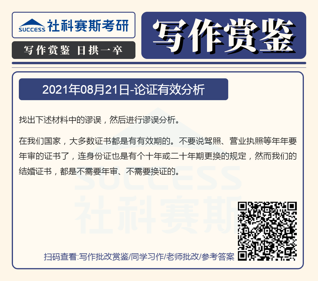 以上就是小編為大家整理“管理類聯(lián)考寫作備考:8月21日寫作鑒賞及答案”的全部?jī)?nèi)容,希望各位考生堅(jiān)持利用起來,想要獲取更多內(nèi)容請(qǐng)持續(xù)關(guān)注社科塞斯考研網(wǎng)。