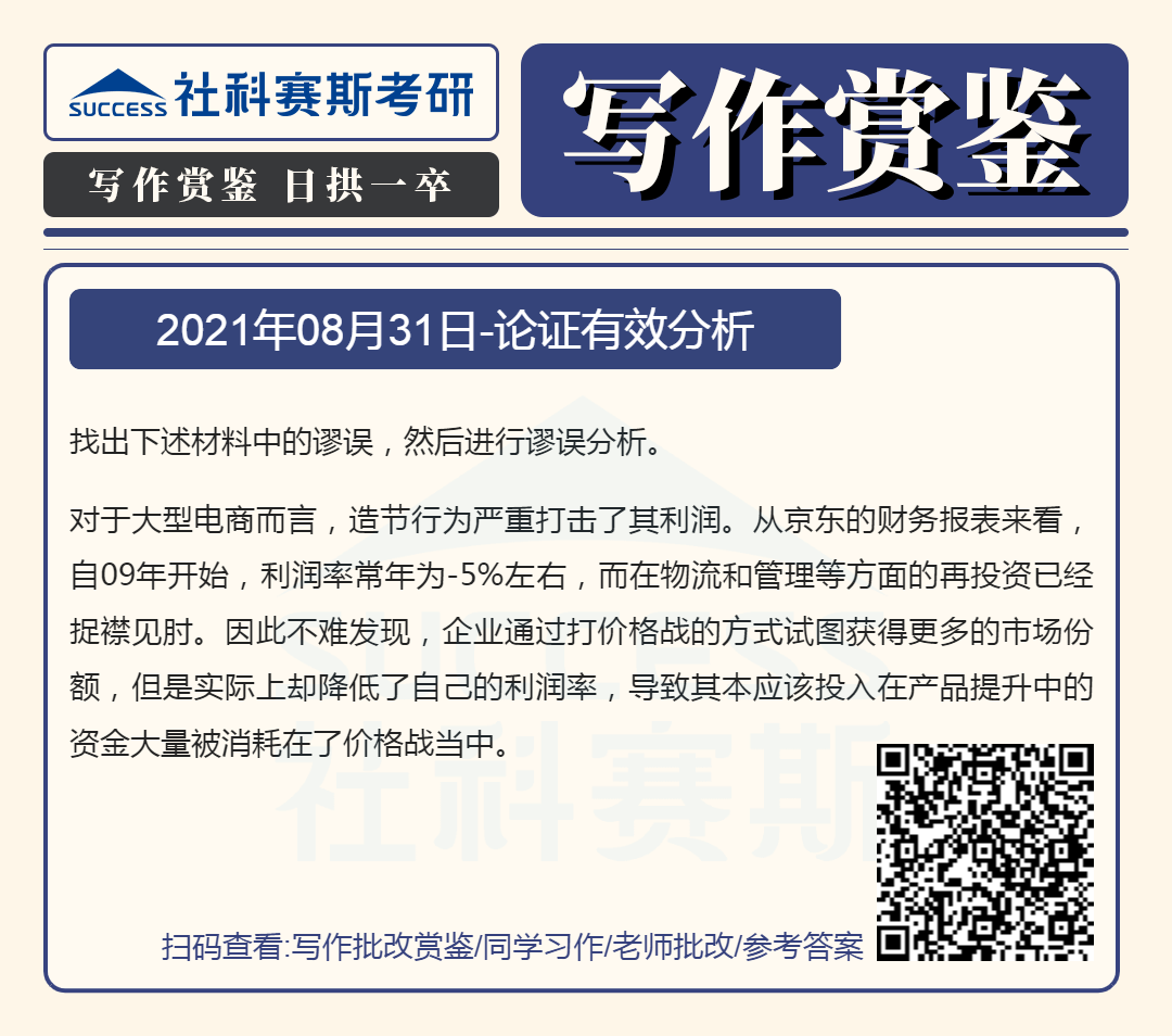 以上就是小編為大家整理“管理類聯(lián)考寫作備考:8月31日寫作鑒賞及答案”的全部內(nèi)容,希望各位考生堅持利用起來,想要獲取更多內(nèi)容請持續(xù)關(guān)注社科塞斯考研網(wǎng)。