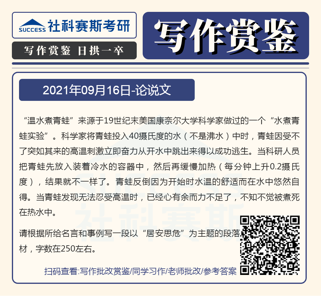 以上就是小編為大家整理“管理類聯(lián)考寫作備考:9月16日寫作鑒賞及答案”的全部內(nèi)容,希望各位考生堅(jiān)持利用起來,想要獲取更多內(nèi)容請(qǐng)持續(xù)關(guān)注社科塞斯考研網(wǎng)。
