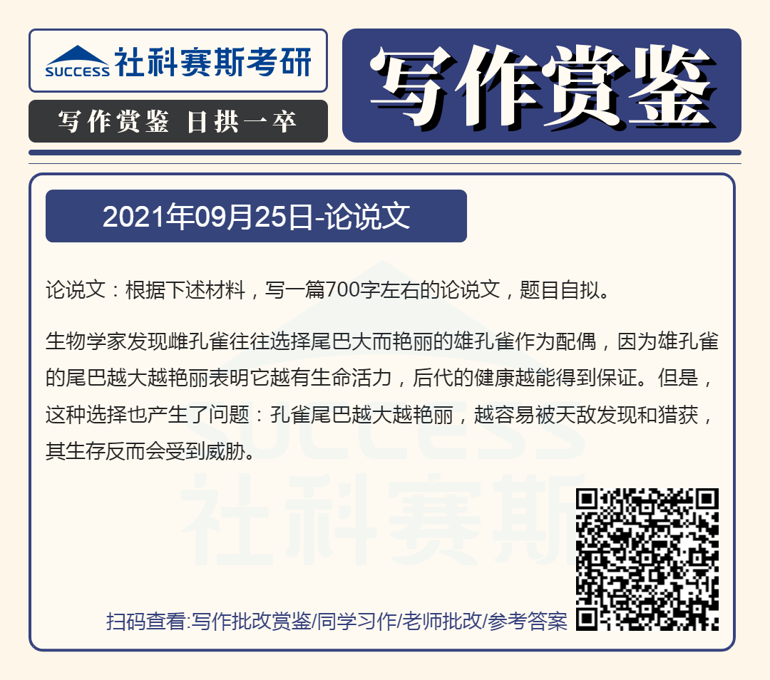 以上就是小編為大家整理“管理類聯(lián)考寫作備考:9月25日寫作鑒賞及答案”的全部內(nèi)容,希望各位考生堅持利用起來,想要獲取更多內(nèi)容請持續(xù)關(guān)注社科塞斯考研網(wǎng)。