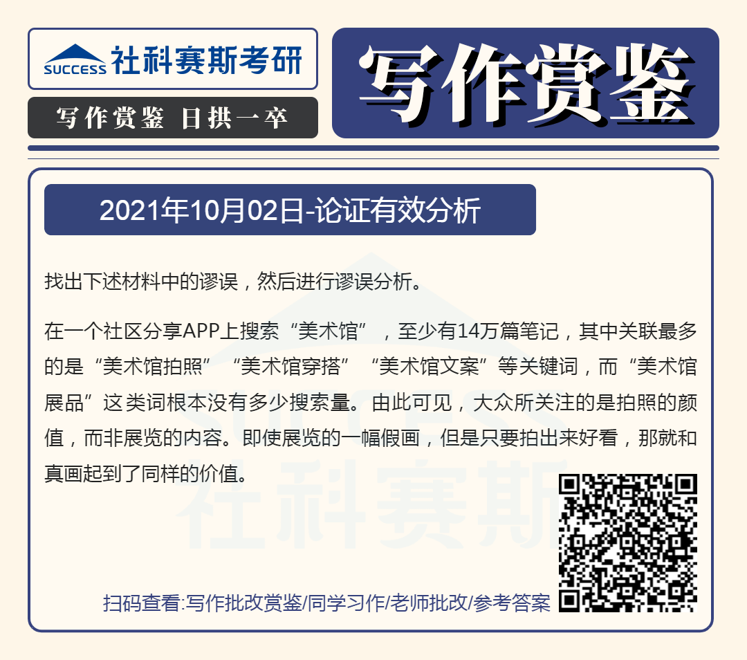 以上就是小編為大家整理“管理類聯(lián)考寫作備考:10月2日寫作鑒賞及答案”的全部內(nèi)容,希望各位考生堅持利用起來,想要獲取更多內(nèi)容請持續(xù)關(guān)注社科塞斯考研網(wǎng)。