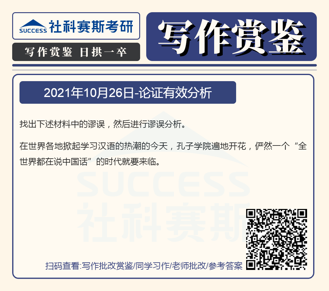 以上就是小編為大家整理“管理類聯(lián)考寫作備考:10月26日寫作鑒賞及答案”的全部內(nèi)容,希望各位考生堅(jiān)持利用起來,想要獲取更多內(nèi)容請持續(xù)關(guān)注社科塞斯考研網(wǎng)。