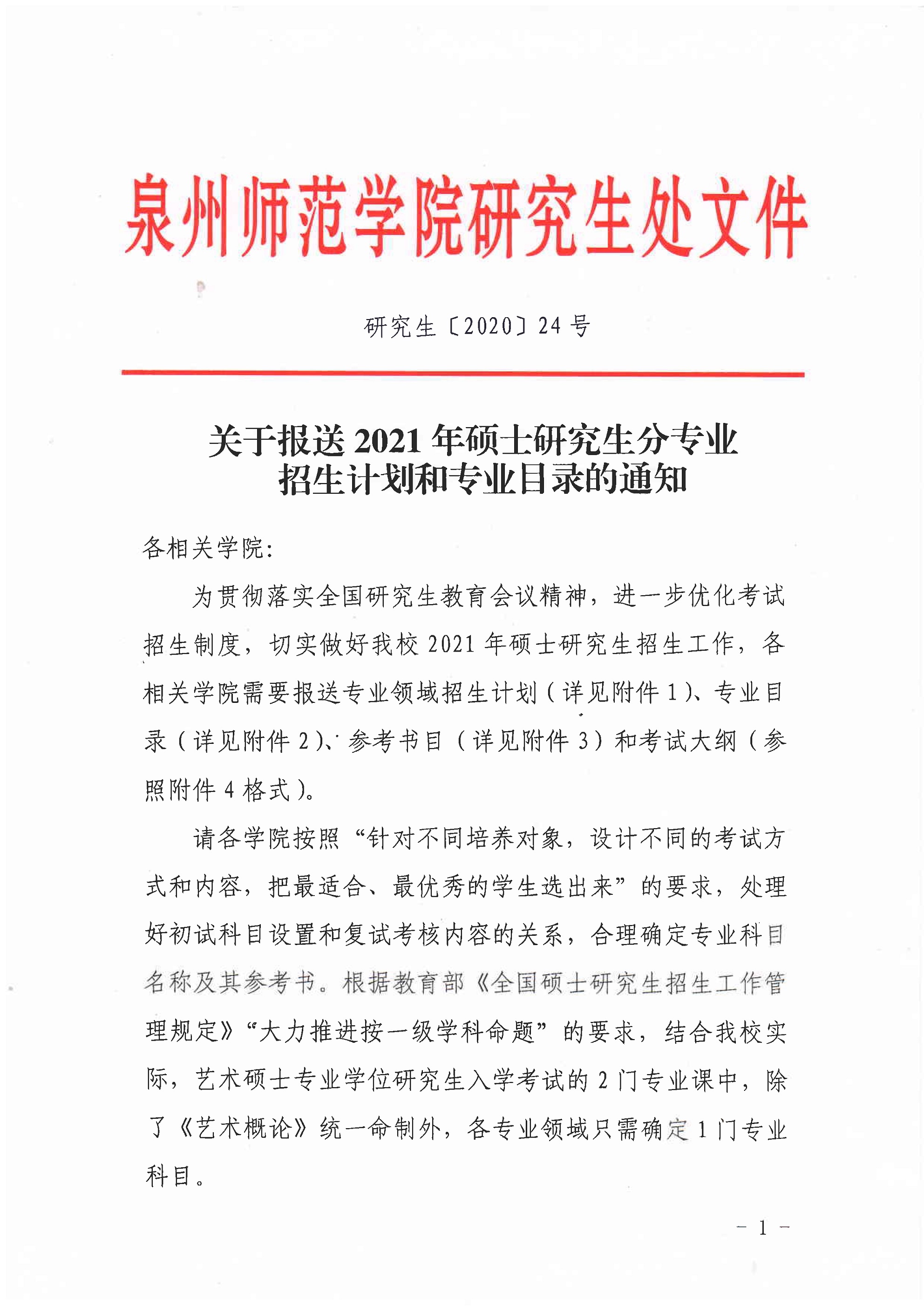 關(guān)于報(bào)送2021年碩士研究生分專業(yè)招生計(jì)劃和專業(yè)目錄的通知