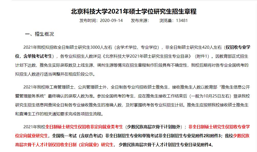 以上就是“考研院校公告:北京科技大學(xué)2021年與2020年考研招生人數(shù)信息變動(dòng)解析”的全部內(nèi)容,想了解更多考研信息,請多多關(guān)注我們!