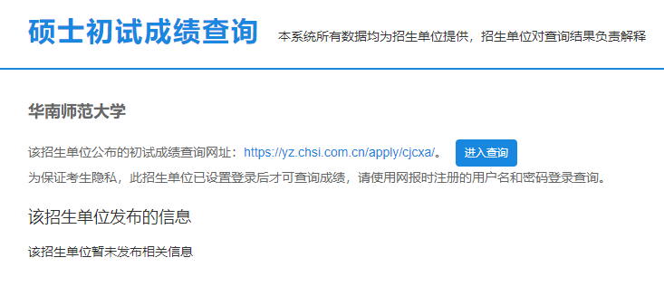 2021考研初試成績:華南師范大學(xué)考研初試成績查詢?nèi)肟陂_啟!初試成績已公布!