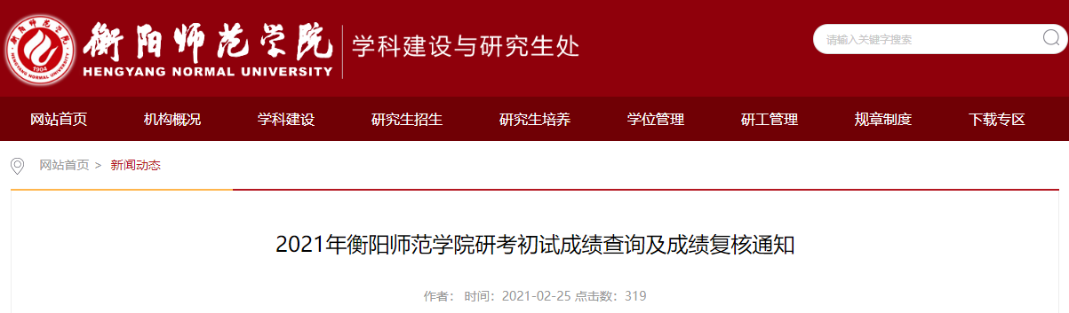 2021考研初試成績:衡陽師范學(xué)院考研初試成績查詢?nèi)肟陂_啟!初試成績已公布!